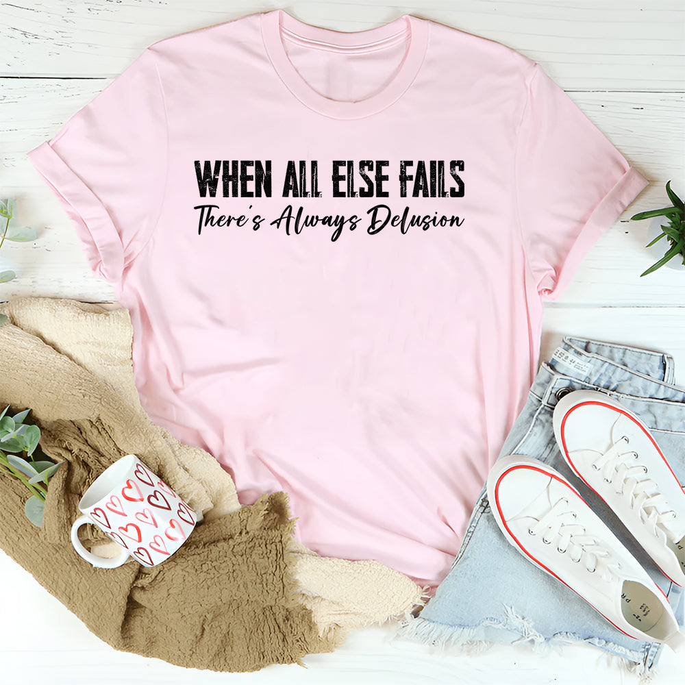 Witty, bold, and hilariously honest. The “When All Else Fails… There’s Always Delusion” T-shirt is for anyone who thrives on sarcasm and doesn’t take life—or themselves—too seriously. It’s the perfect way to turn setbacks into a laugh-out-loud attitude.