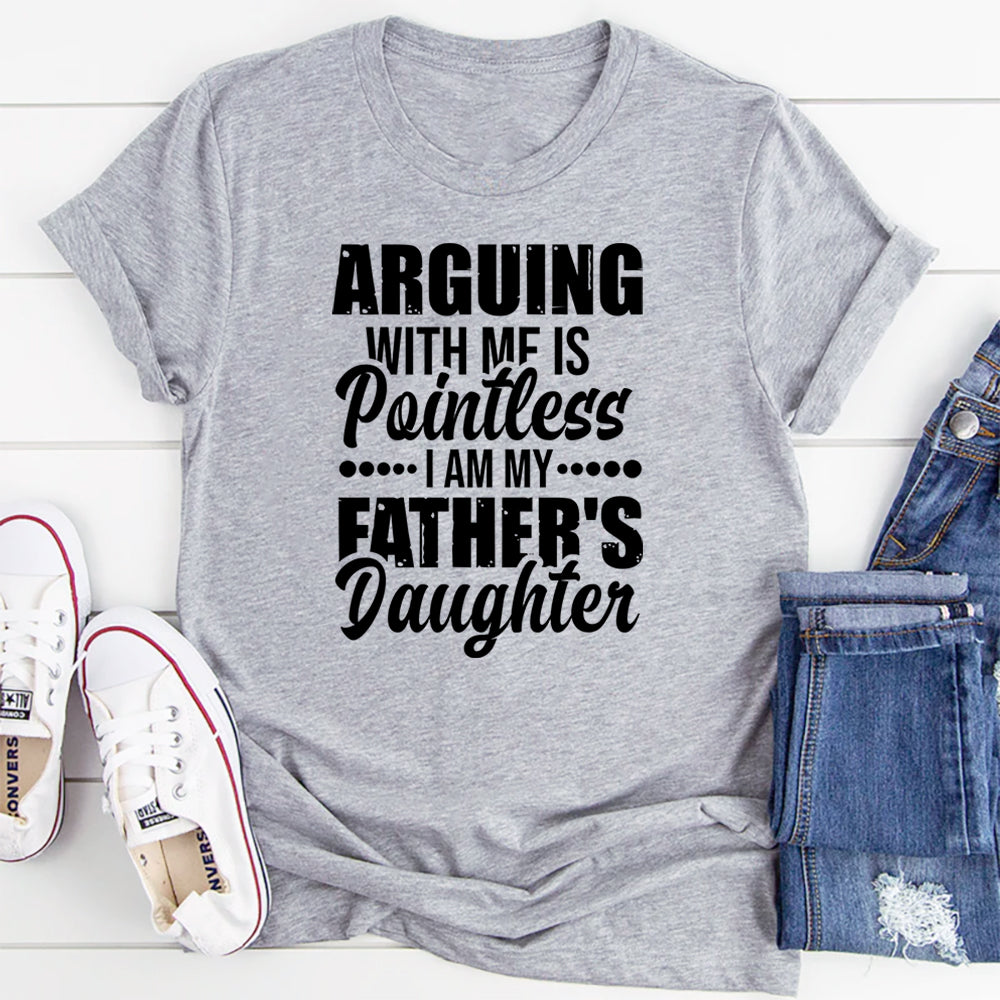 Bold, fierce, and unapologetically loyal. The “Arguing With MF Is Pointless… I Am My Father’s Daughter” T-shirt is for anyone who knows their worth, carries confidence, and isn’t afraid to let people know it. Strong, sassy, and full of attitude, this tee turns family pride into a powerful statement.