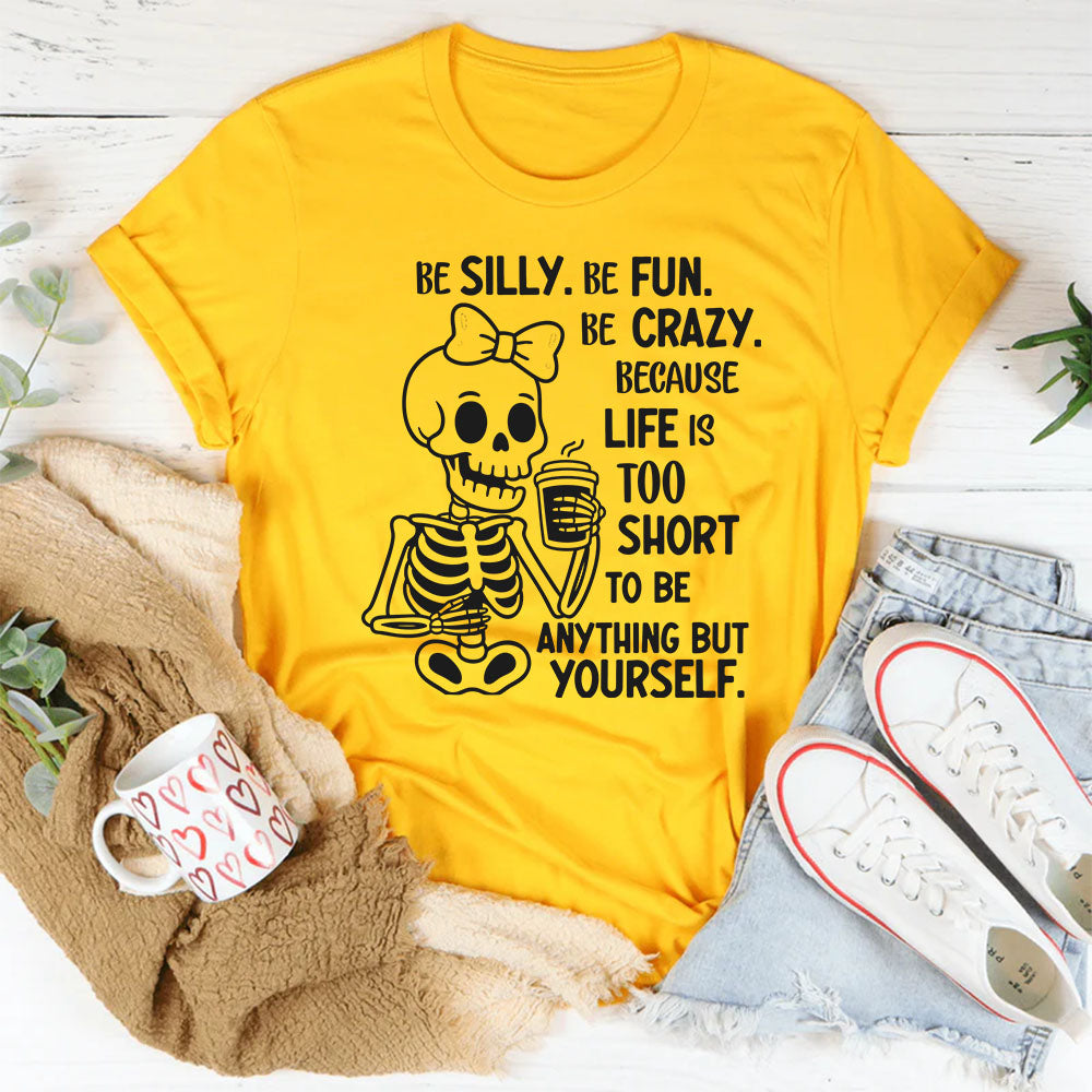 Live loud, laugh often. The “Be Silly, Be Fun, Be Crazy — Because Life Is Too Short to Be Anything but Yourself” t-shirt is all about embracing joy and authenticity. Bright, positive, and inspiring, it’s the perfect reminder to live life unapologetically.