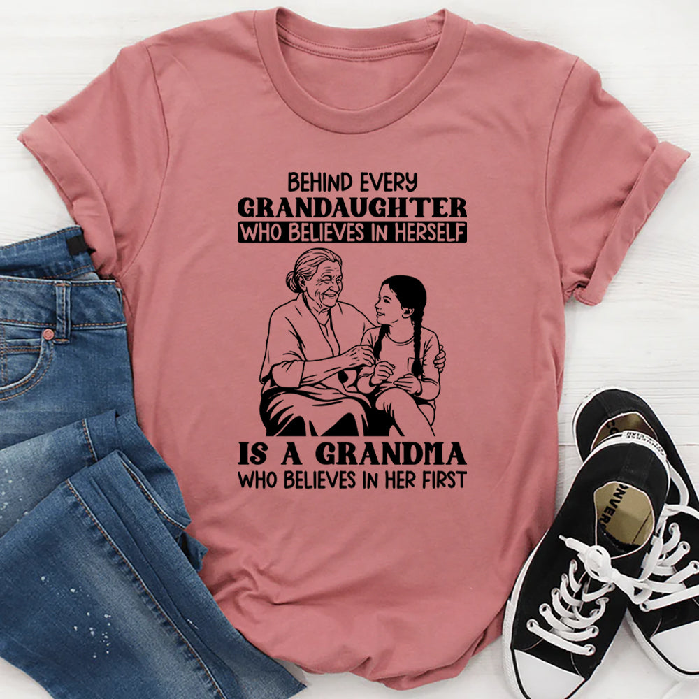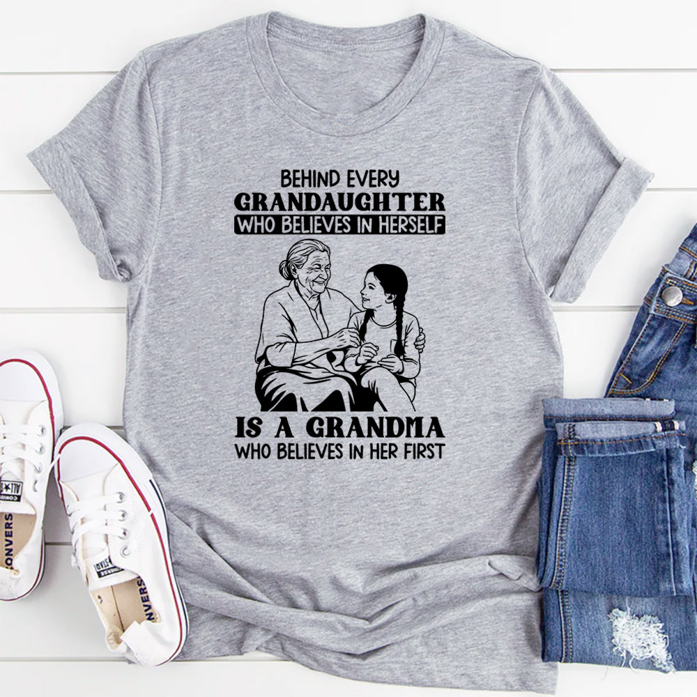 Heartfelt, inspiring, and full of love. The “Behind Every Granddaughter Who Believes in Herself Is a Grandma Who Believes in Her First” t‑shirt is made for grandmas who take pride in empowering the next generation. It delivers a warm, uplifting message with style, celebrating the special bond between grandmother and granddaughter.