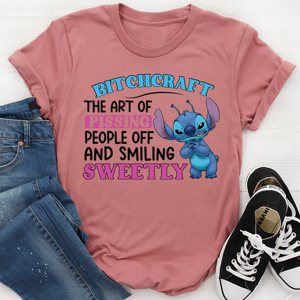 Witty, bold, and unapologetically sassy. The “Bitchcraft: The Art of Pissing People Off and Smiling Sweetly” t-shirt is perfect for anyone who loves to mix charm with a little mischief. Show off your knack for keeping people on their toes—all while looking effortlessly sweet.