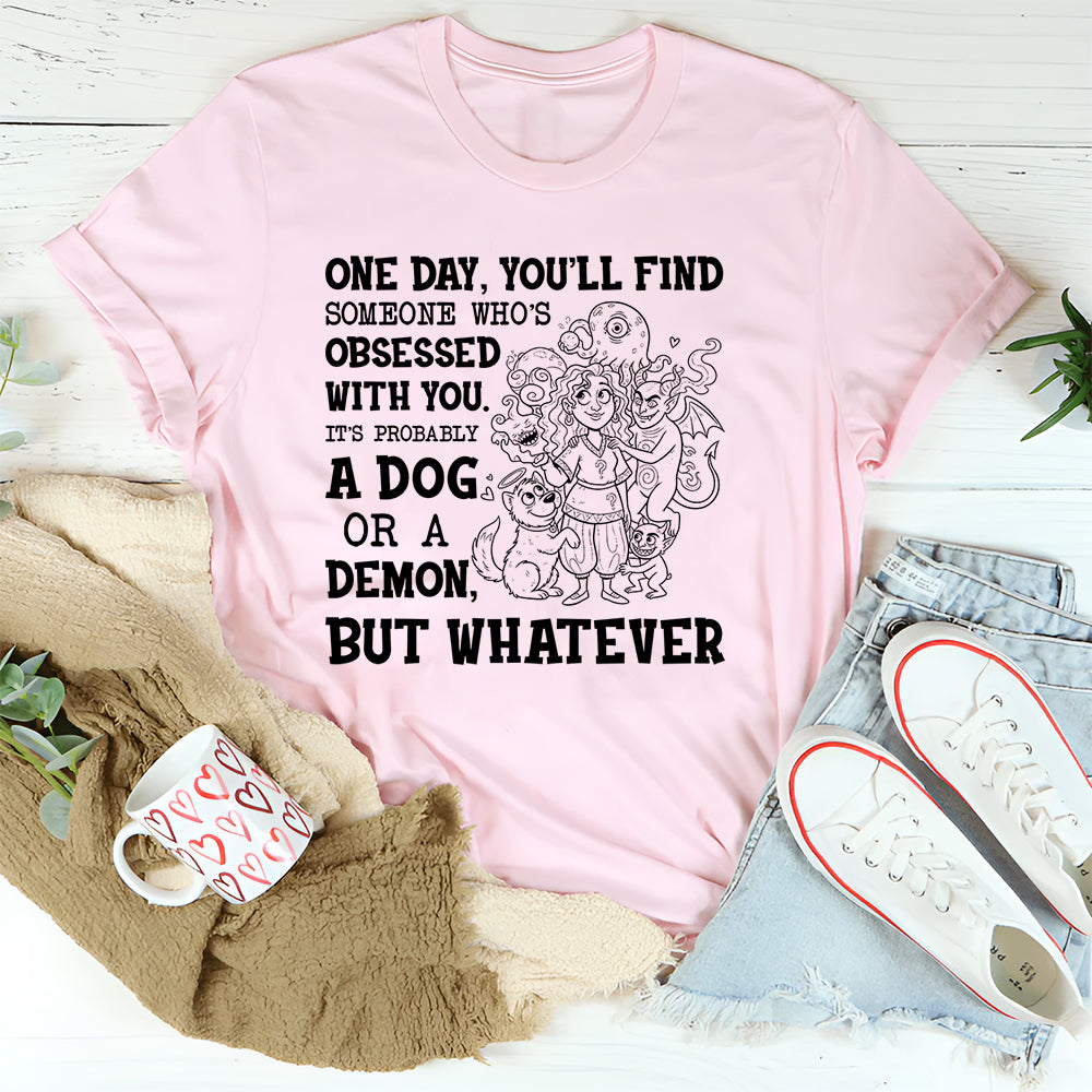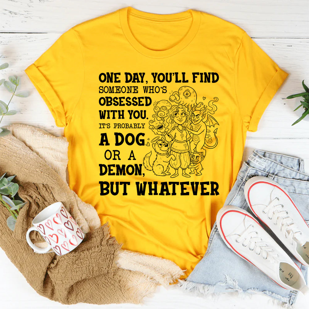 Playful, sarcastic, and a little bit dark—the “One Day, You’ll Find Someone Who’s Obsessed With You. It’s Probably a Dog or a Demon, But Whatever” T‑shirt is for anyone who loves humor with an edge. Perfect for dog lovers, meme fans, or anyone who enjoys embracing life’s absurdities with a wink.