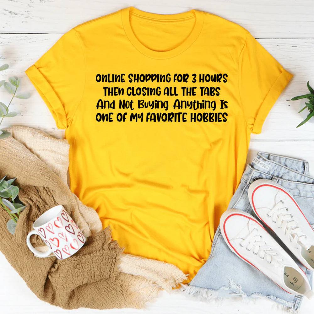 Relatable, hilarious, and oh-so-true. The “Online Shopping for 3 Hours Then Closing All the Tabs and Not Buying Anything Is One of My Favorite Hobbies” T-shirt is for anyone who loves the thrill of browsing… without the commitment.