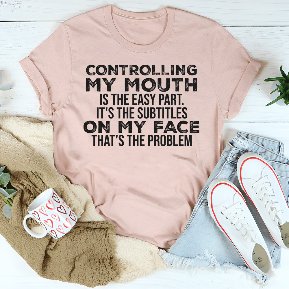 Show off your sense of humor with the “Controlling My Mouth Is the Easy Part, It’s the Subtitles on My Face That’s the Problem” t-shirt. Perfect for anyone whose expressions say it all, this shirt is a fun way to admit you can’t always hide what you’re really thinking.