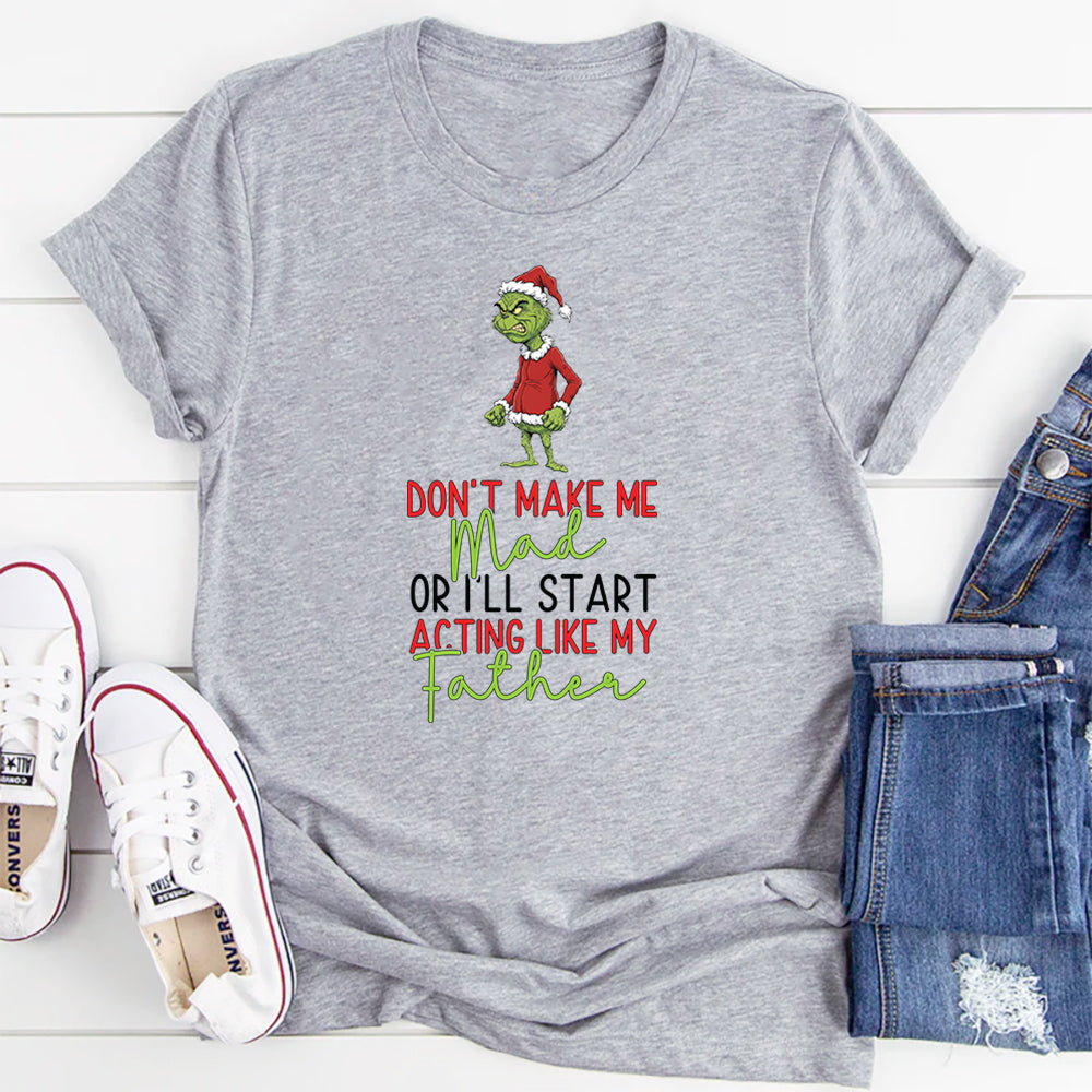 Warning: proceed with caution. The “Don’t Make Me Mad or I’ll Start Acting Like My Father” T-shirt is perfect for anyone who knows that attitude runs in the family—and it’s not always pretty. Bold, humorous, and a little intimidating, this tee turns family traits into a laugh-out-loud statement.