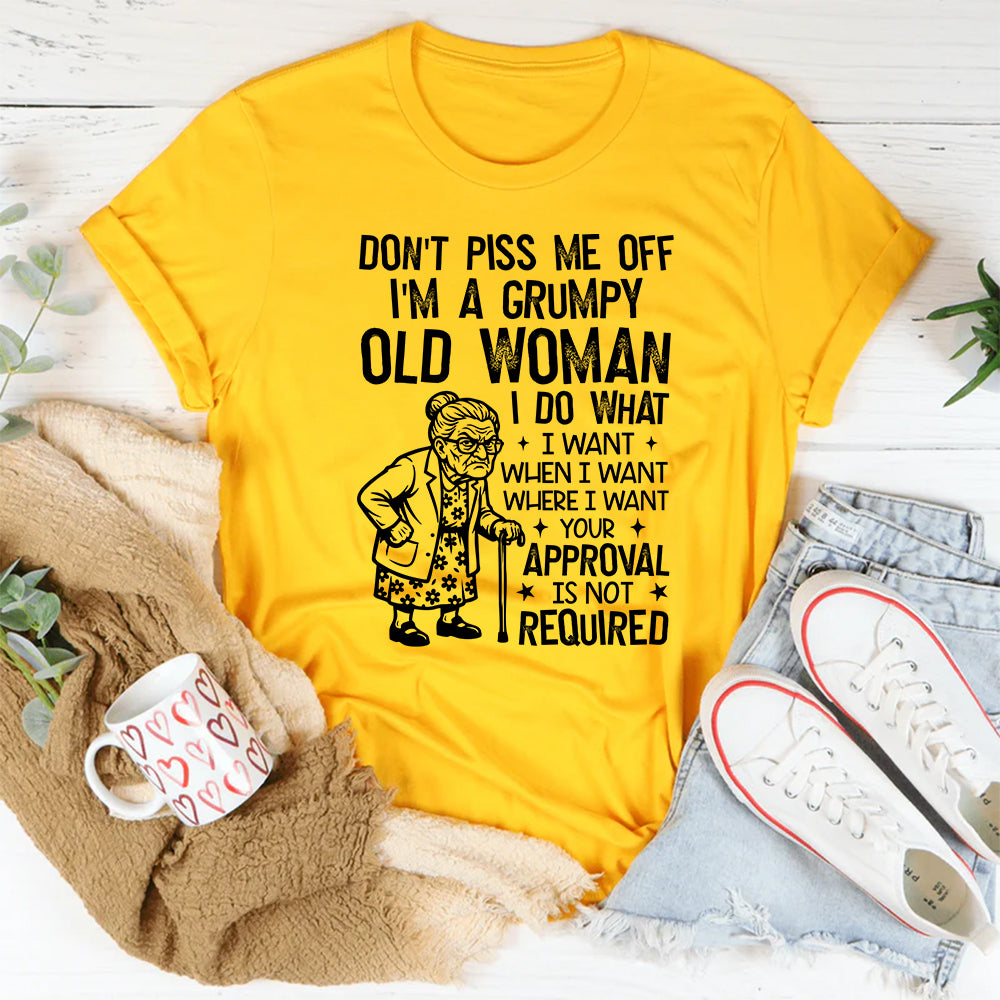 Bold, fearless, and unapologetically real. The “Don’t Piss Me Off — I’m a Grumpy Old Woman. I Do What I Want, When I Want, Where I Want. Your Approval Is Not Required” t-shirt is made for women who live life on their own terms. It delivers attitude, confidence, and humor, letting everyone know you answer to no one.