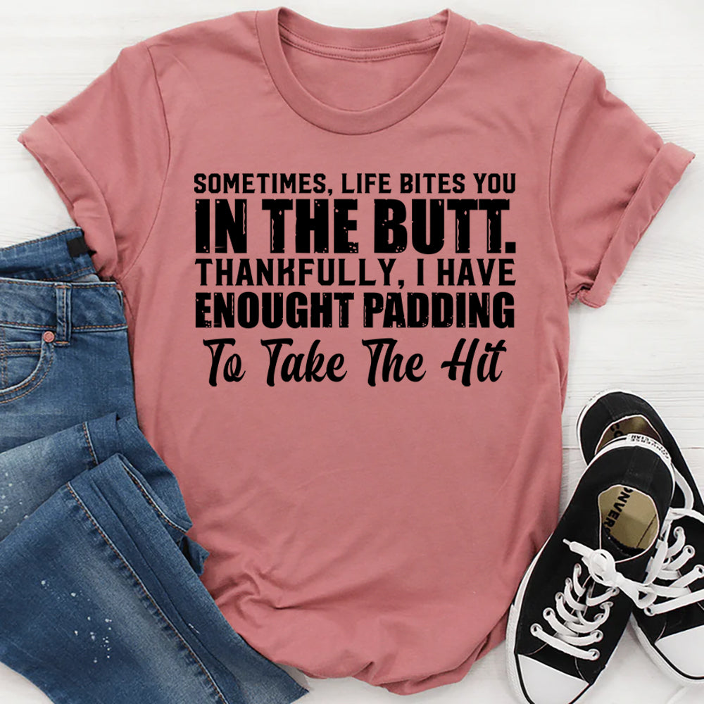 Funny, clever, and perfectly relatable. The “Sometimes, Life Bites You in the Butt — Thankfully, I Have Enough Padding to Take the Hit” T-shirt is for anyone who faces life’s surprises with humor—and a little extra cushioning. Because resilience comes in many forms, and sometimes it’s literally soft.