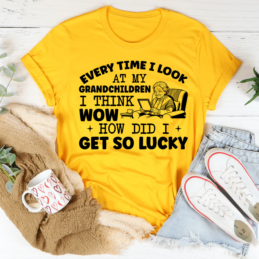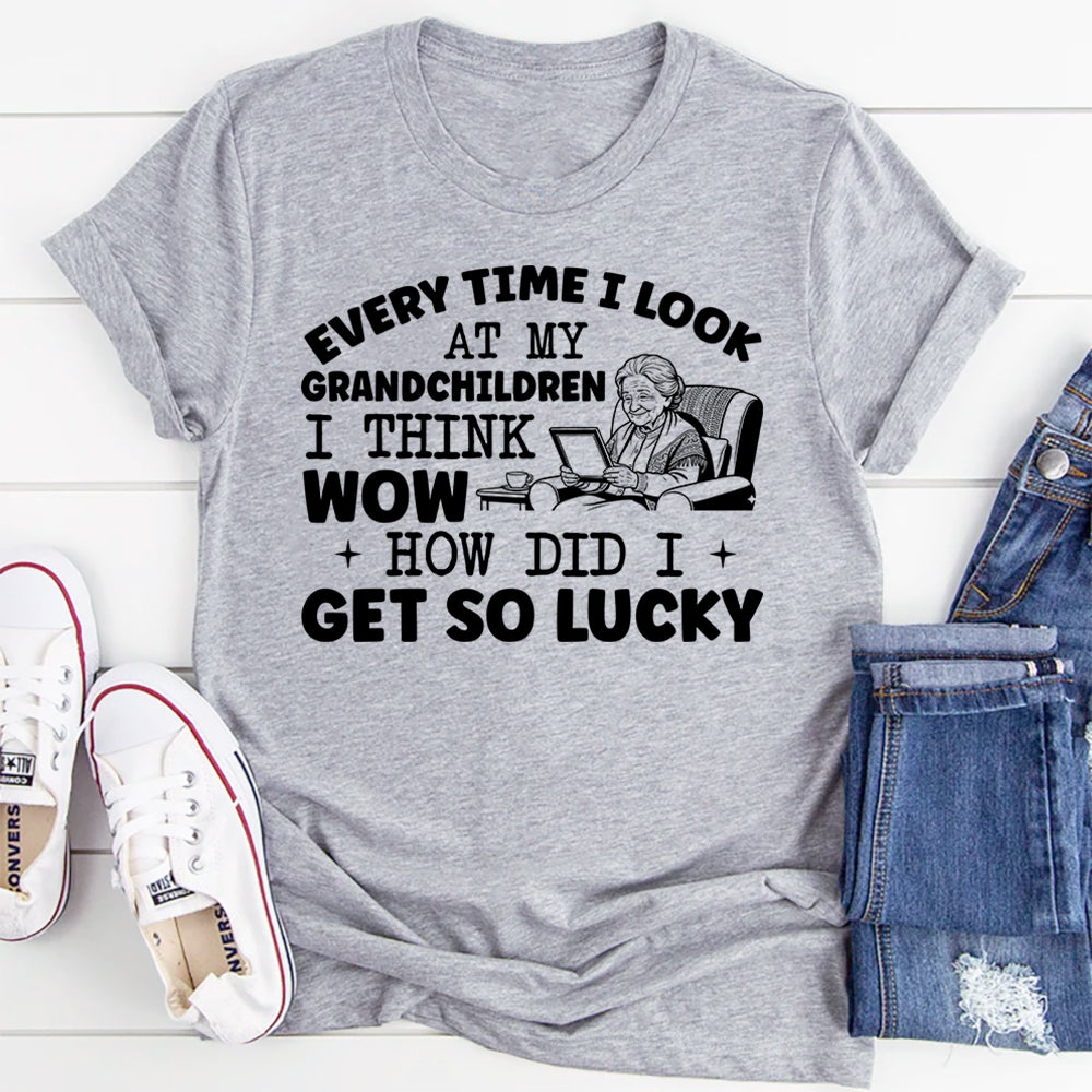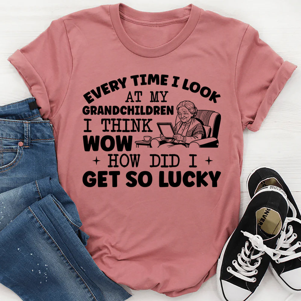 Heartwarming, proud, and full of love. The “Every Time I Look at My Grandchildren I Think Wow — How Did I Get So Lucky” t‑shirt is made for grandmas and grandpas who cherish every moment with their grandchildren. It delivers a sweet, heartfelt message that celebrates family and the special bond between generations.