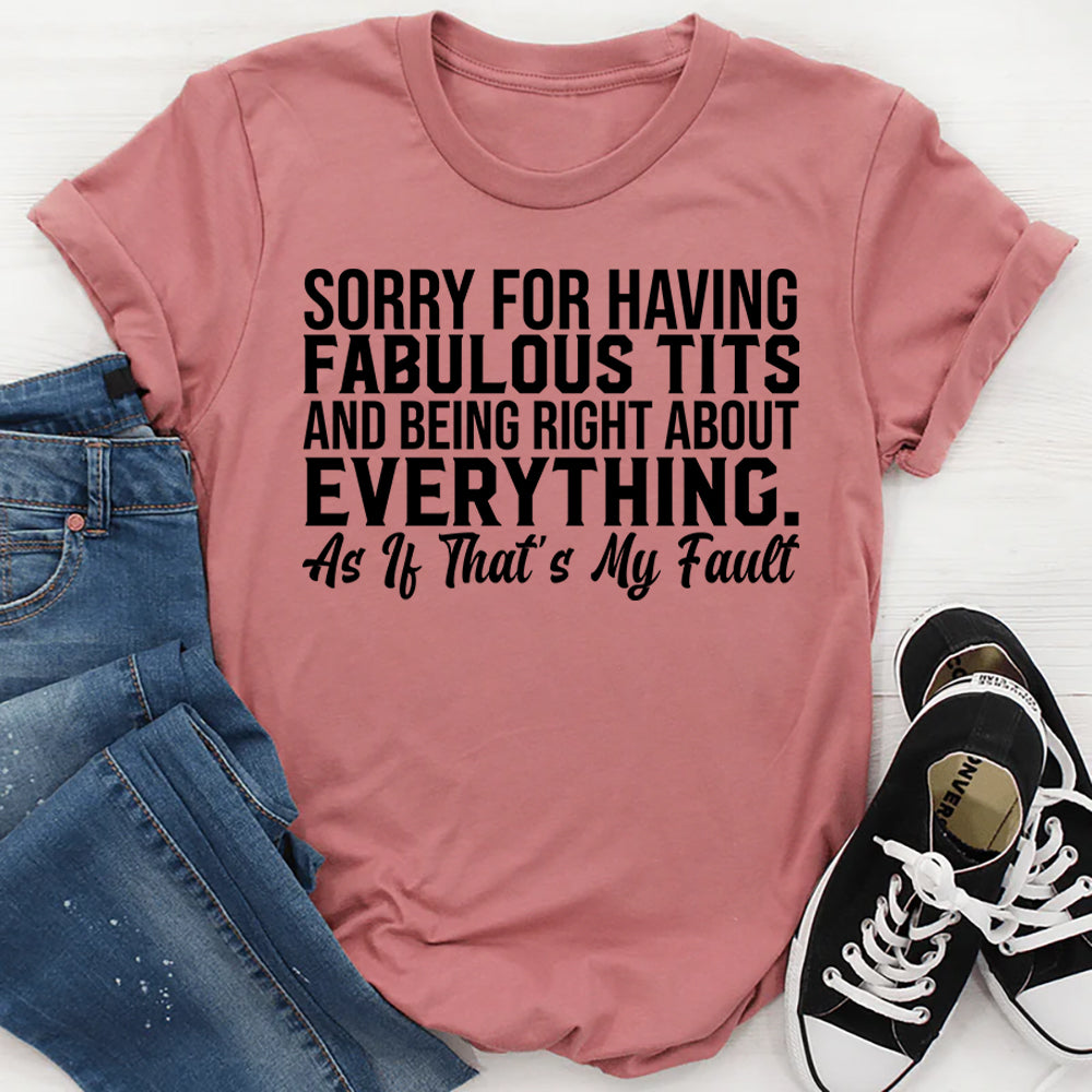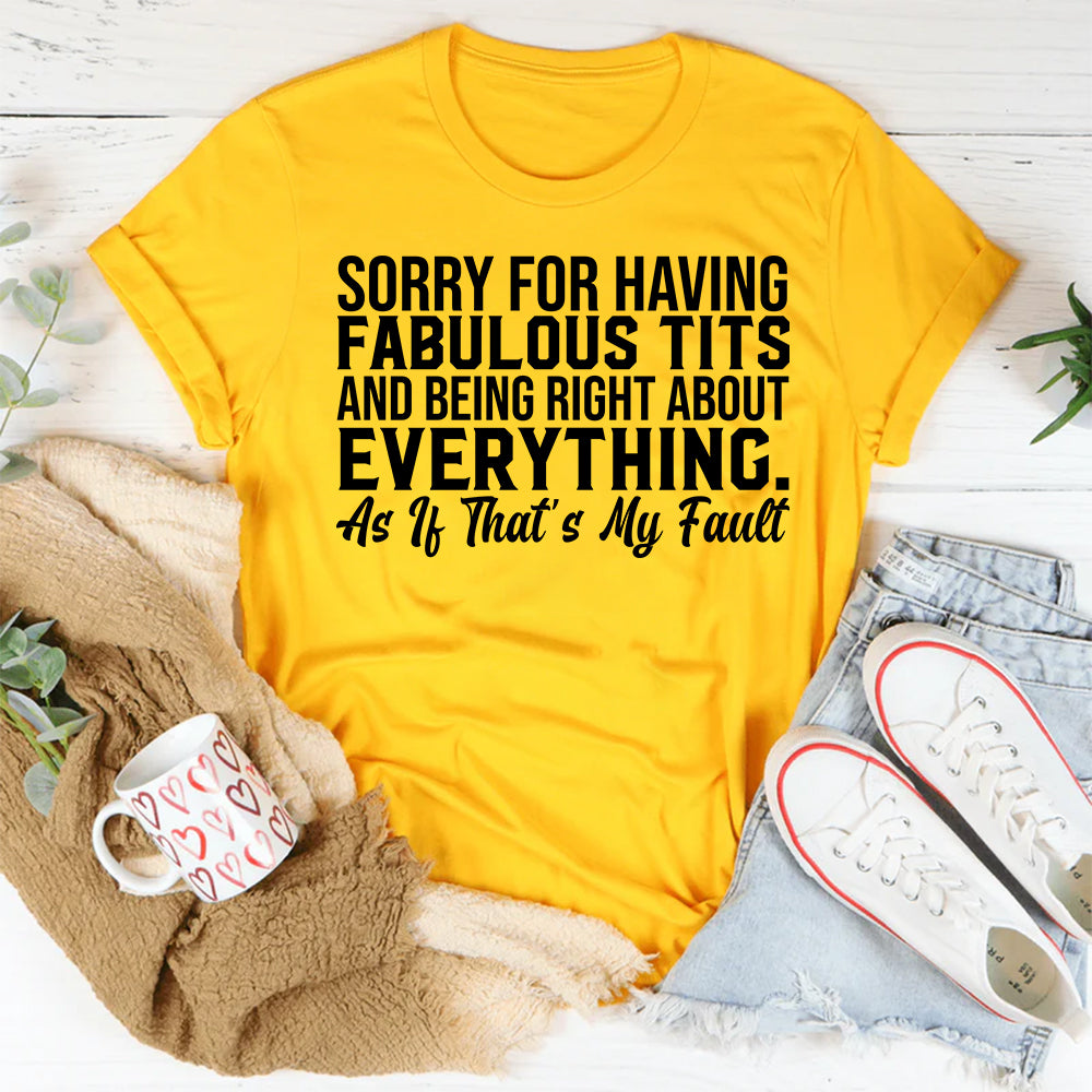 Bold, hilarious, and unapologetically confident—the “Sorry for Having Fabulous Tits and Being Right About Everything — As If That’s My Fault” T-shirt is perfect for anyone who knows their power, humor, and sass come as a package deal. It’s a playful way to own your confidence while delivering a laugh-out-loud punchline.