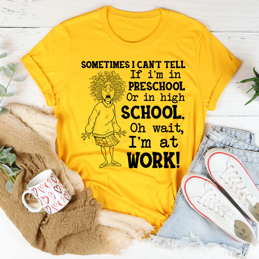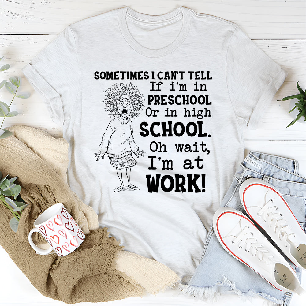 Funny, honest, and totally relatable, the “Sometimes I Can’t Tell If I’m in Preschool or in High School… Oh Wait, I’m at Work!” T‑shirt is for anyone who’s survived a day at the office and wondered how they got there.