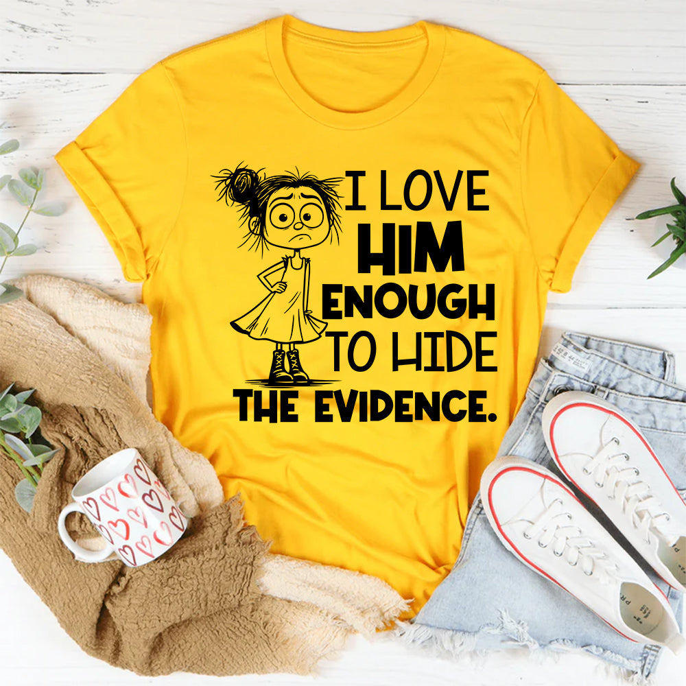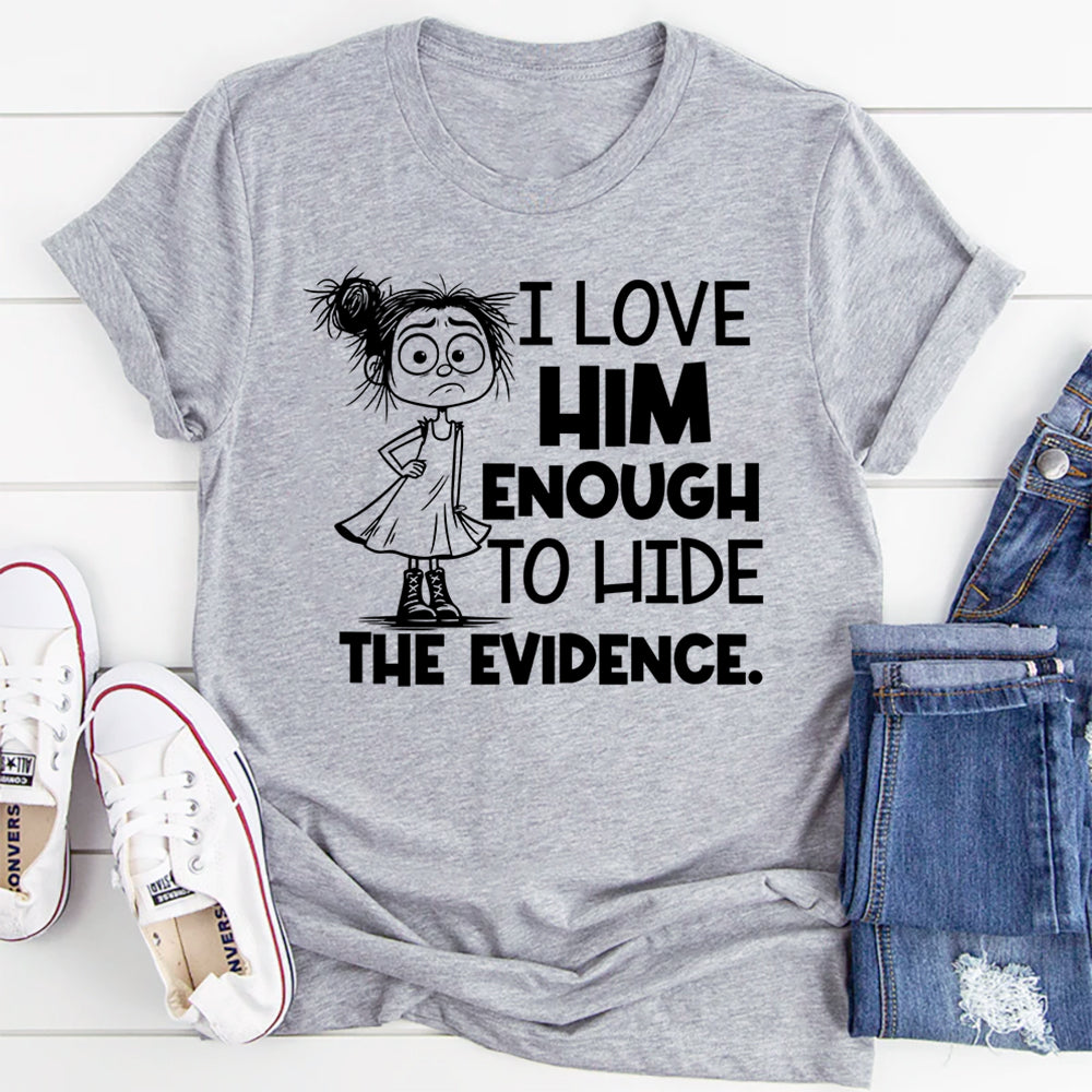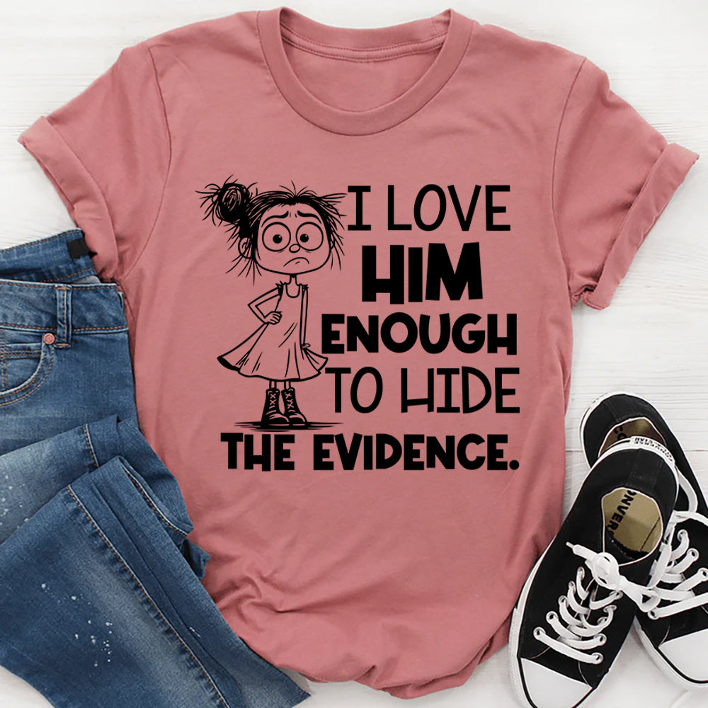 Darkly funny, bold, and a little bit twisted — the “I Love Him Enough to Hide the Evidence” T-shirt is perfect for those who mix romance with a wicked sense of humor. It’s a cheeky way to show love… with a slightly dangerous edge.