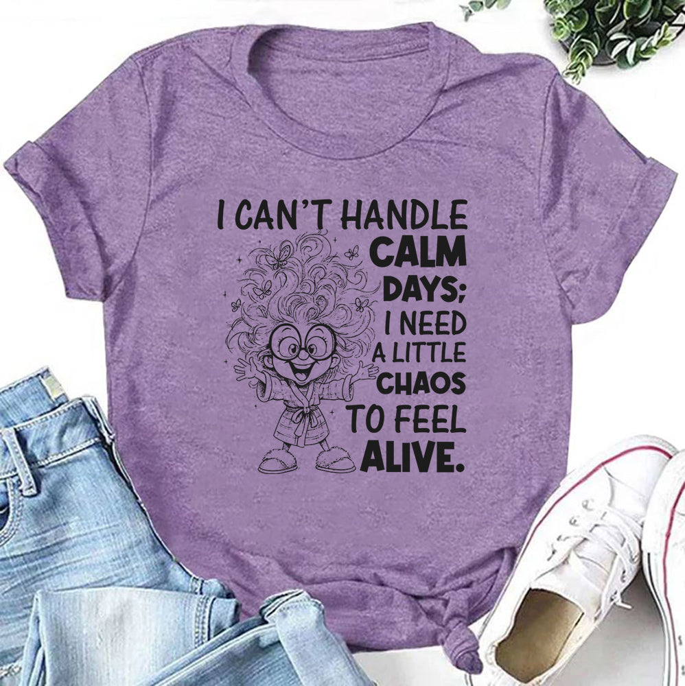 Quiet days? Couldn't be you. This “I Can't Handle Calm Days; I Need a Little Chaos to Feel Alive” t-shirt is for the thrill-seekers of everyday life — the ones who thrive on spontaneous plans, loud laughs, dramatic energy shifts, and just a sprinkle of beautiful disaster. If peace feels suspicious and boredom is your worst enemy, this tee gets you.