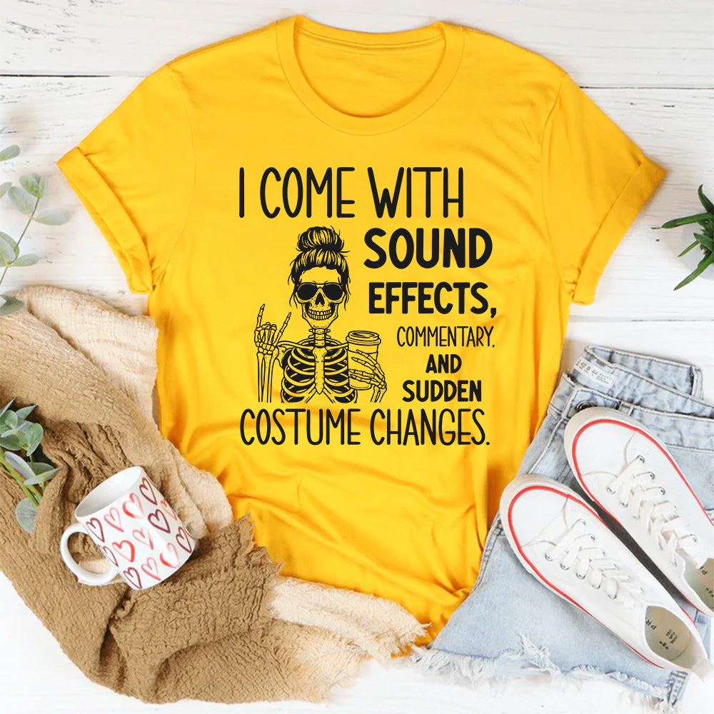 Bring the drama (and the laughs) everywhere you go with this “I Come with Sound Effects, Commentary, and Sudden Costume Changes” t-shirt! Perfect for the natural-born entertainer who can turn any moment into a full production, this tee is bursting with humor, personality, and flair.