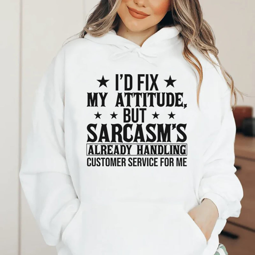 Your attitude? Managed. Your sarcasm? Running the front lines. This “I’d Fix My Attitude, But Sarcasm’s Already Handling Customer Service for Me” hoodie is for anyone whose sharp wit does all the talking, and whose patience for nonsense is… limited. Perfect for sarcastic souls who know that sometimes humor is the best (and only) defense.