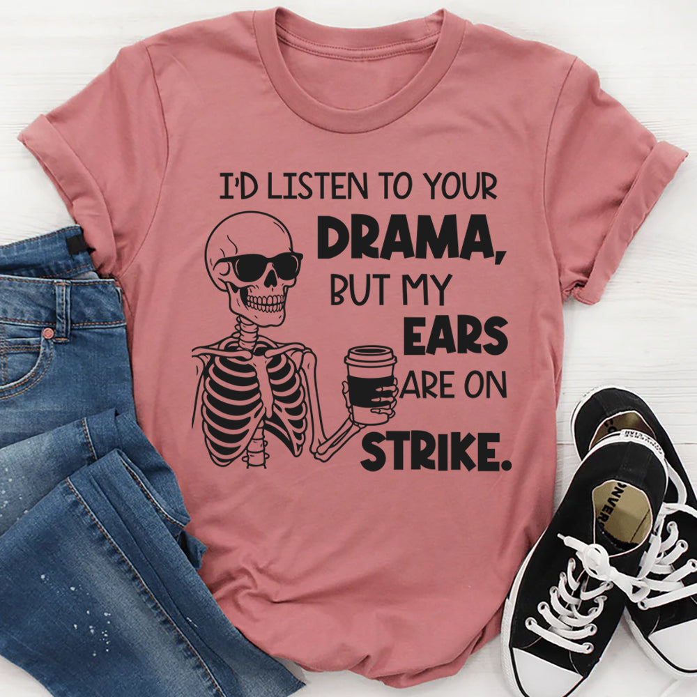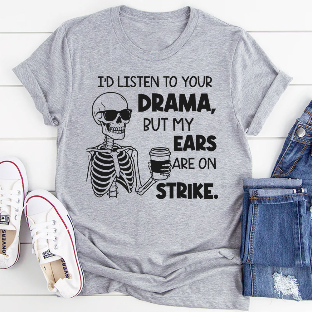 Protect your peace and your patience with this “I’d Listen to Your Drama, But My Ears Are on Strike” t-shirt! Perfect for anyone who’s over gossip, done with chaos, and fully committed to emotional quiet hours, this tee delivers humor and boundaries in the most stylish way.
