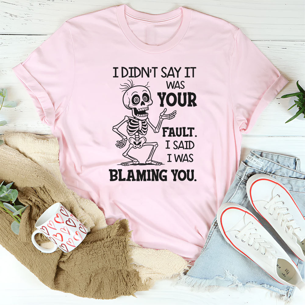 The art of deflection, perfected. The “I Didn’t Say It Was Your Fault, I Said I Was Blaming You” t-shirt is the ultimate mix of sarcasm and humor. Perfect for anyone who loves playful banter and never passes up the chance to stir the pot.