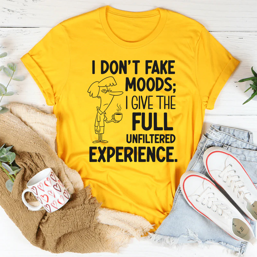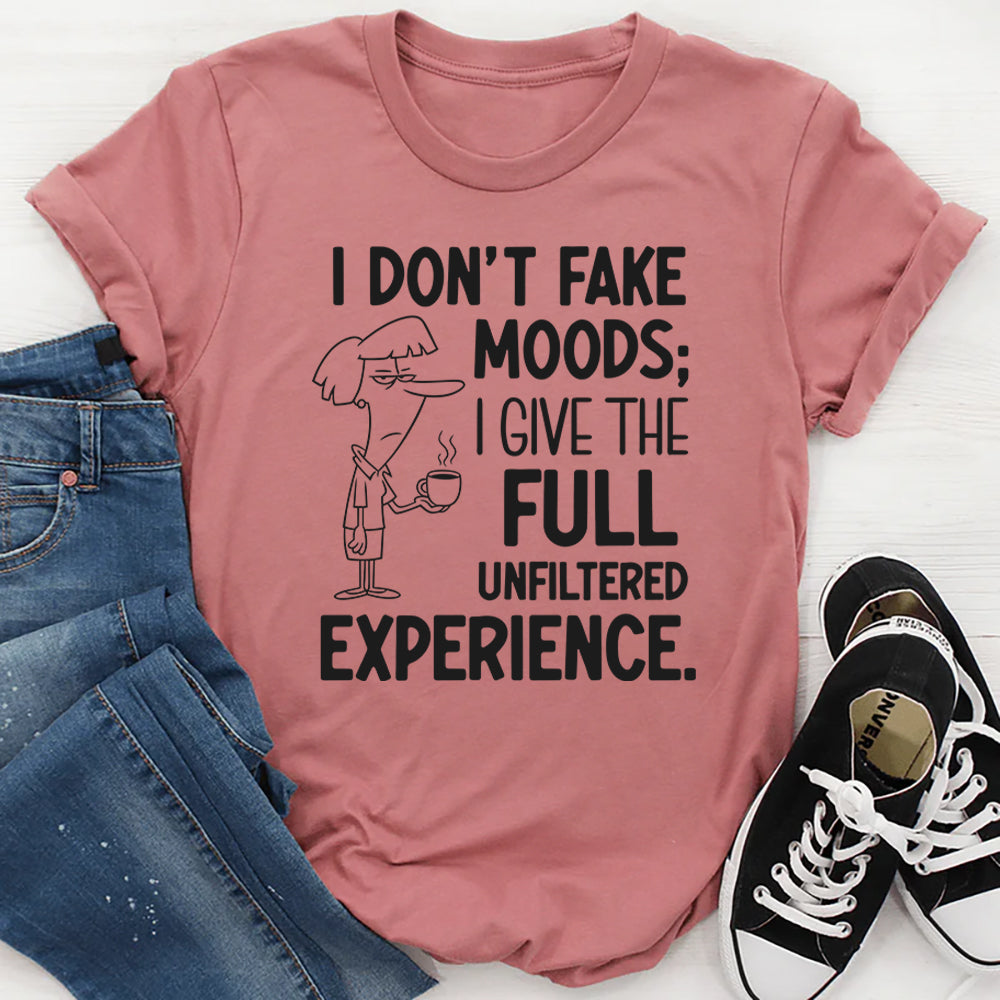 Bring your unapologetic energy to life with this “I Don’t Fake Moods; I Give the Full Unfiltered Experience” t-shirt! Perfect for those who keep it real no matter the situation, this tee is all about authenticity, attitude, and a little bit of sass.