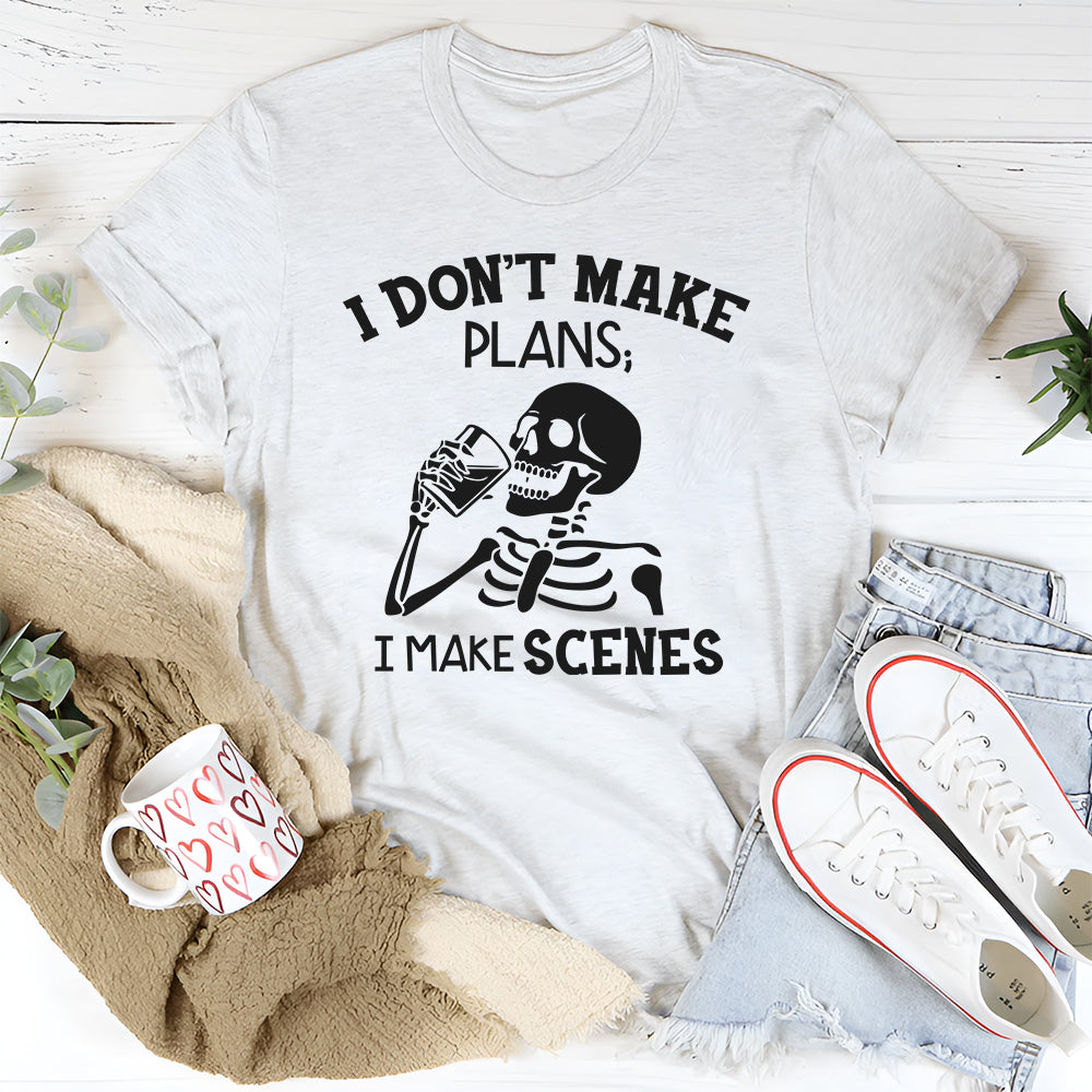 Bring your bold energy everywhere you go with this “I Don’t Make Plans; I Make Scenes” t-shirt! Perfect for drama lovers, spontaneous souls, and anyone who manages to turn every outing into a story worth retelling, this tee adds flair and personality to any outfit.