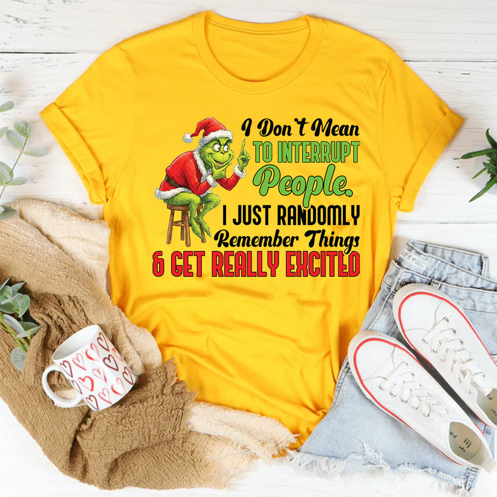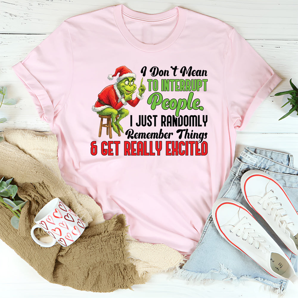 Funny, quirky, and delightfully relatable. The “I Don’t Mean to Interrupt People and Remember Things & Get Really Excited, I Just Randomly” t‑shirt is made for anyone whose enthusiasm occasionally bursts out at the wrong moment. It’s a playful nod to spontaneity, curiosity, and the little quirks that make you… well, you.