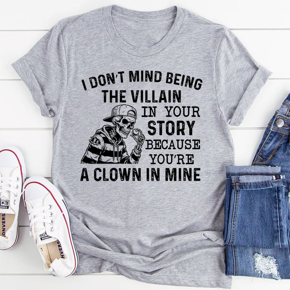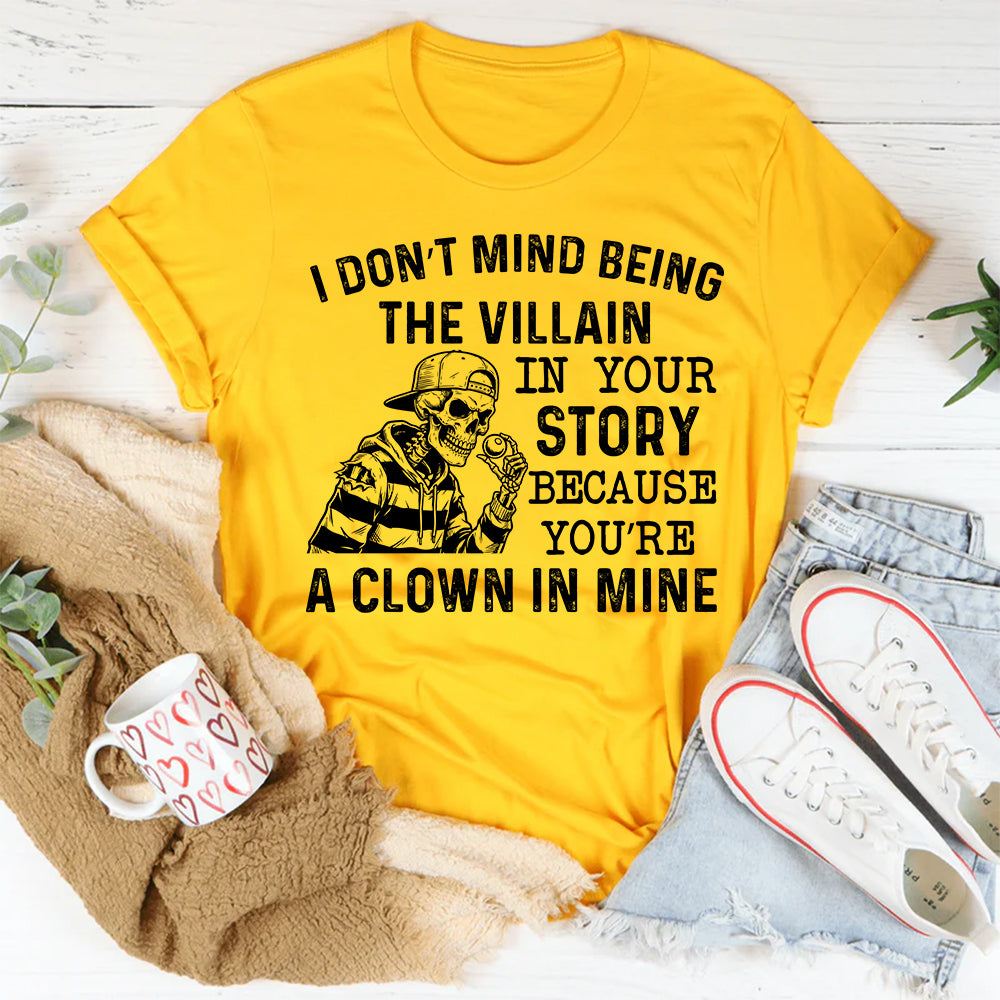 Bold, unapologetic, and sharply confident. The “I Don’t Mind Being the Villain in Your Story Because You’re a Clown in Mine” t-shirt is made for those who’ve stopped explaining themselves and started owning their narrative. It’s a fearless statement about perspective, self-respect, and not caring who misunderstands you.