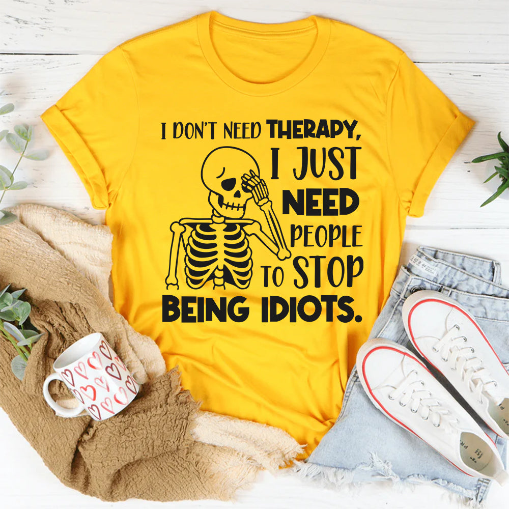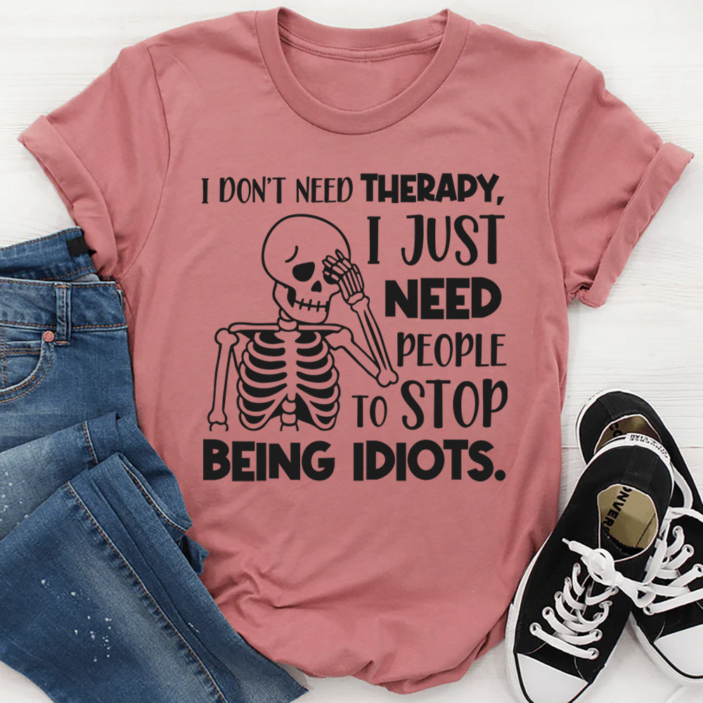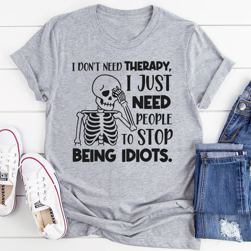 Who needs therapy when the real problem is the people around you? This “I Don’t Need Therapy, I Just Need People To Stop Being Idiots” t-shirt is perfect for anyone with patience thinner than Wi-Fi at a crowded café and a sarcastic streak that deserves a spotlight.