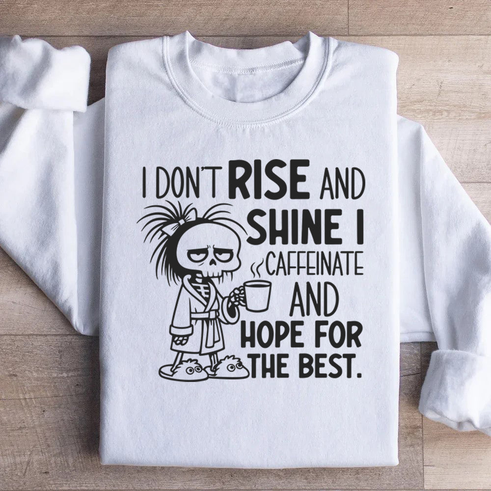 Bright mornings? Couldn't be us. This “I Don’t Rise and Shine — I Caffeinate and Hope for the Best” sweatshirt is for the people who greet the day with caffeine, realism, and just enough optimism to function. Sunshine isn't the energy source here — coffee is.