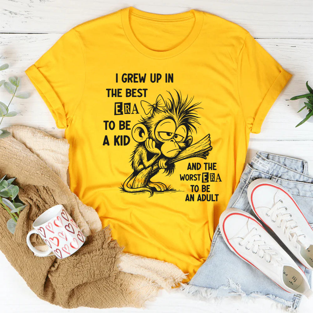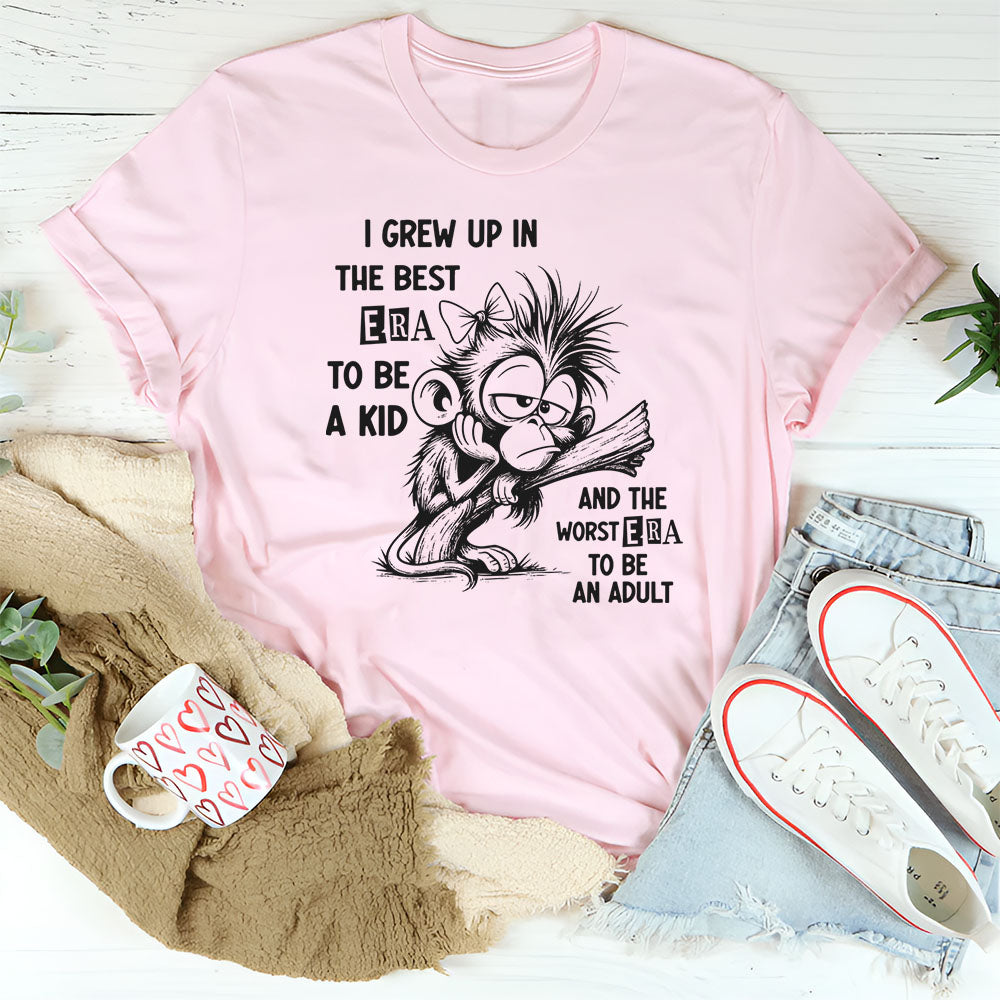 Celebrate the irony of adulthood with the “I Grew Up in the Best Era to Be a Kid and the Worst Era to Be an Adult” t-shirt — a nostalgic yet hilarious nod to simpler childhood days and the struggles of grown-up life. This witty tee is perfect for anyone who misses the good old times but knows the reality of being an adult isn’t all it’s cracked up to be.