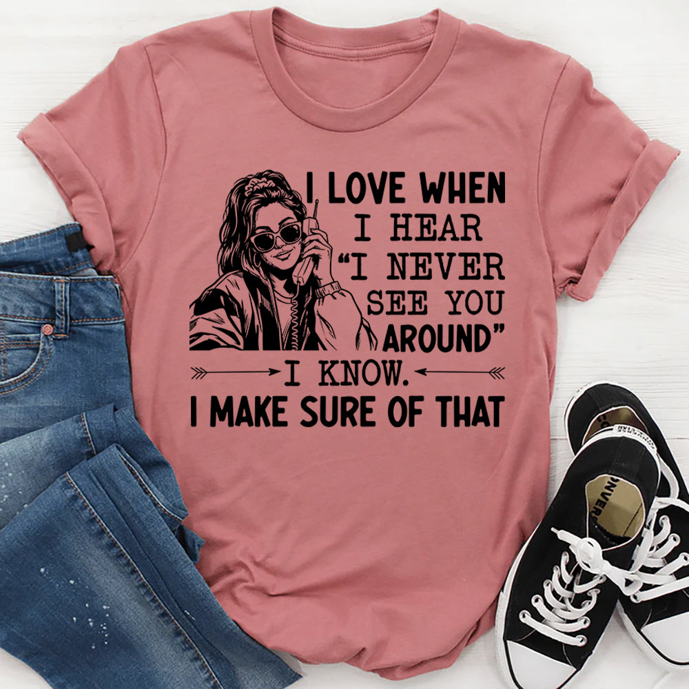 Quietly savage and unapologetically independent. The “I Love When I Hear ‘I Never See You Around’ — I Know. I Make Sure of That.” t-shirt is made for those who value their peace, keep a low profile, and move intentionally. It’s a confident statement about boundaries, solitude, and choosing when—and if—you show up.