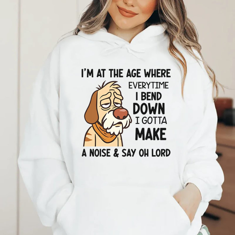 Playful, honest, and perfectly relatable — this “I’m at the Age Where Every Time I Bend Down I Gotta Make a Noise & Say Oh Lord” hoodie speaks to anyone who’s started noticing the little quirks that come with life experience. It’s not about complaining — it’s about laughing at the everyday realities that make us human.