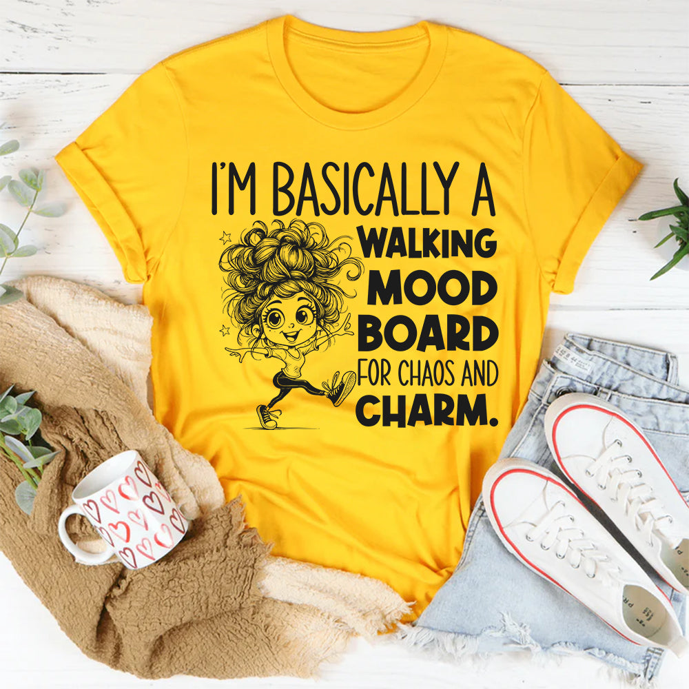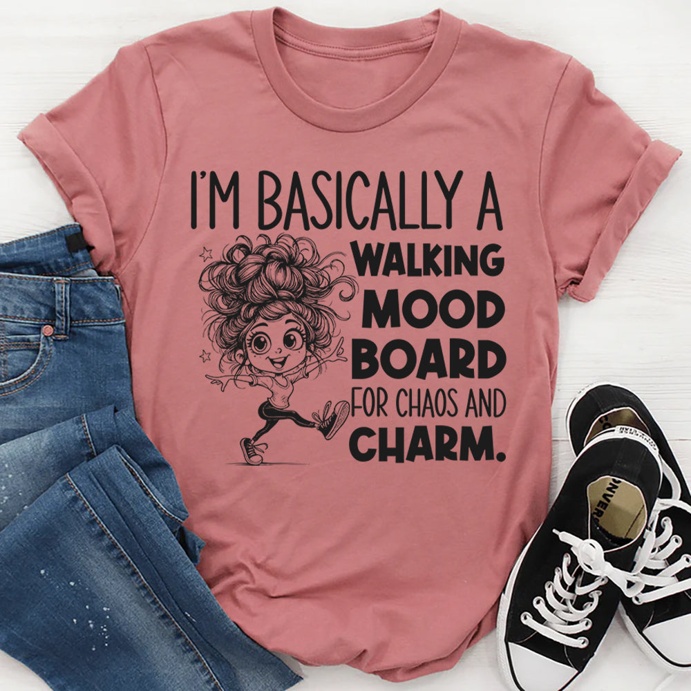 Vibrant, unpredictable, and effortlessly magnetic — this “I’m Basically a Walking Mood Board for Chaos and Charm” t-shirt is for the beautifully unfiltered souls who live life like a curated collage of energy, sparkle, and spontaneous decisions. It’s made for the ones who can stir up a little drama, steal every laugh in the room, and still look adorable doing it.