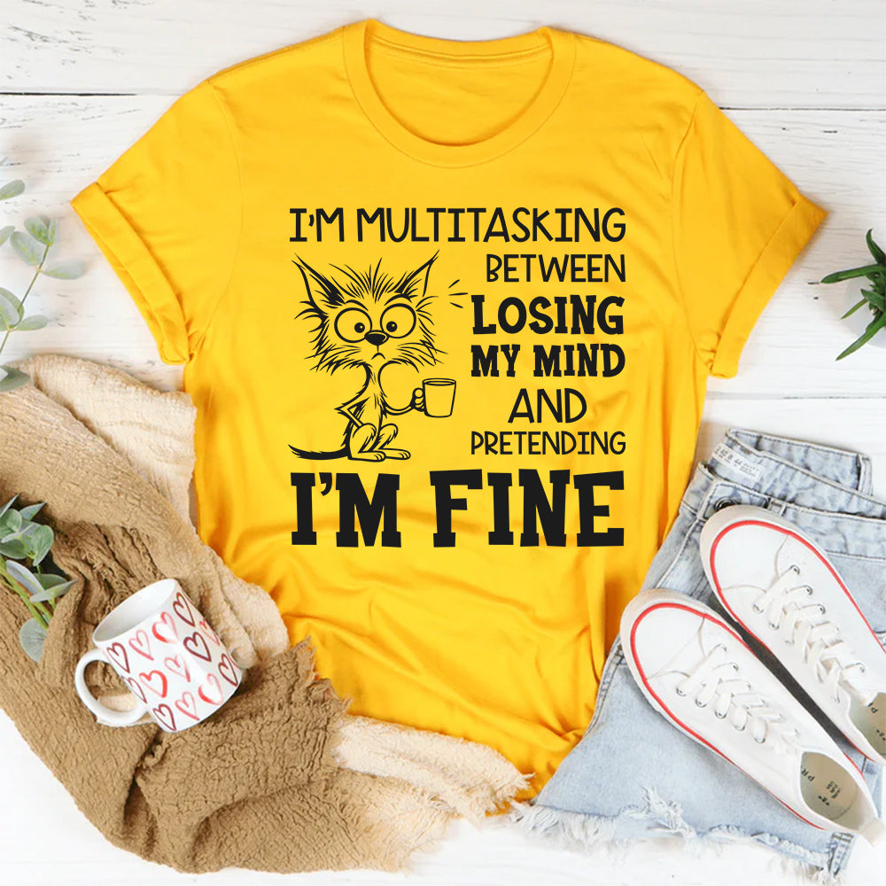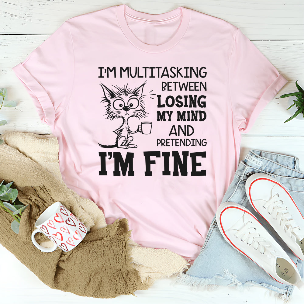 Embrace the chaos in style with this “I’m Multitasking Between Losing My Mind and Pretending I’m Fine” t-shirt! Perfect for anyone juggling life, work, and sanity all at once, this tee delivers humor and honesty in the most relatable way.