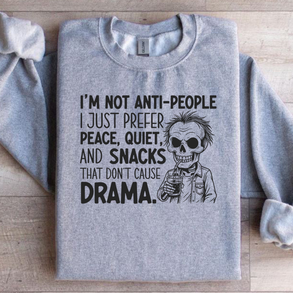 It’s not that you dislike people — you just really love peace, quiet, and snacks that don’t come with emotional side effects. This “I’m Not Anti-People, I Just Prefer Peace, Quiet, and Snacks That Don’t Cause Drama” sweatshirt is for anyone who enjoys good company… as long as that company isn't loud, chaotic, or draining.
