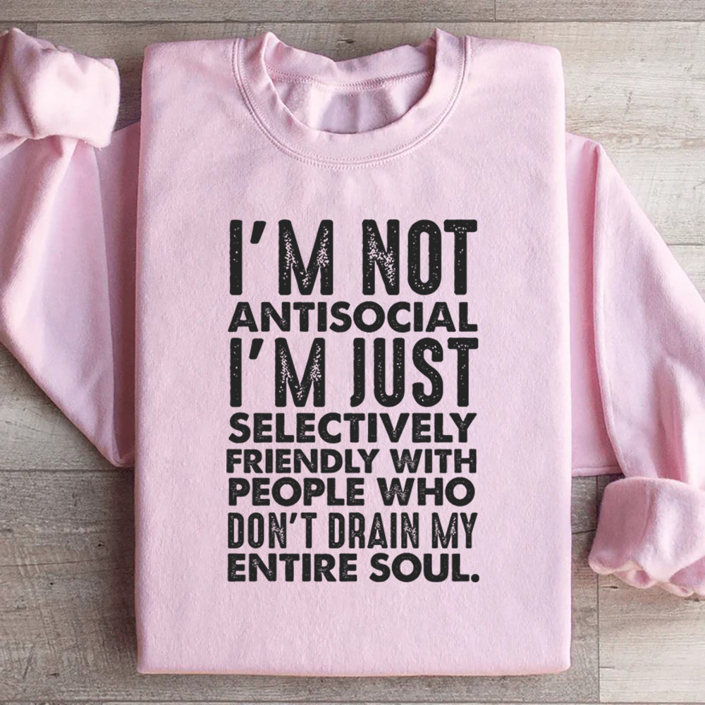 It’s not antisocial — it’s selective socializing. This “I’m Not Antisocial, I’m Just Selectively Friendly With People Who Don’t Drain My Entire Soul” sweatshirt is for the people who value quality company, quiet energy, and conversations that don’t feel like emotional cardio.