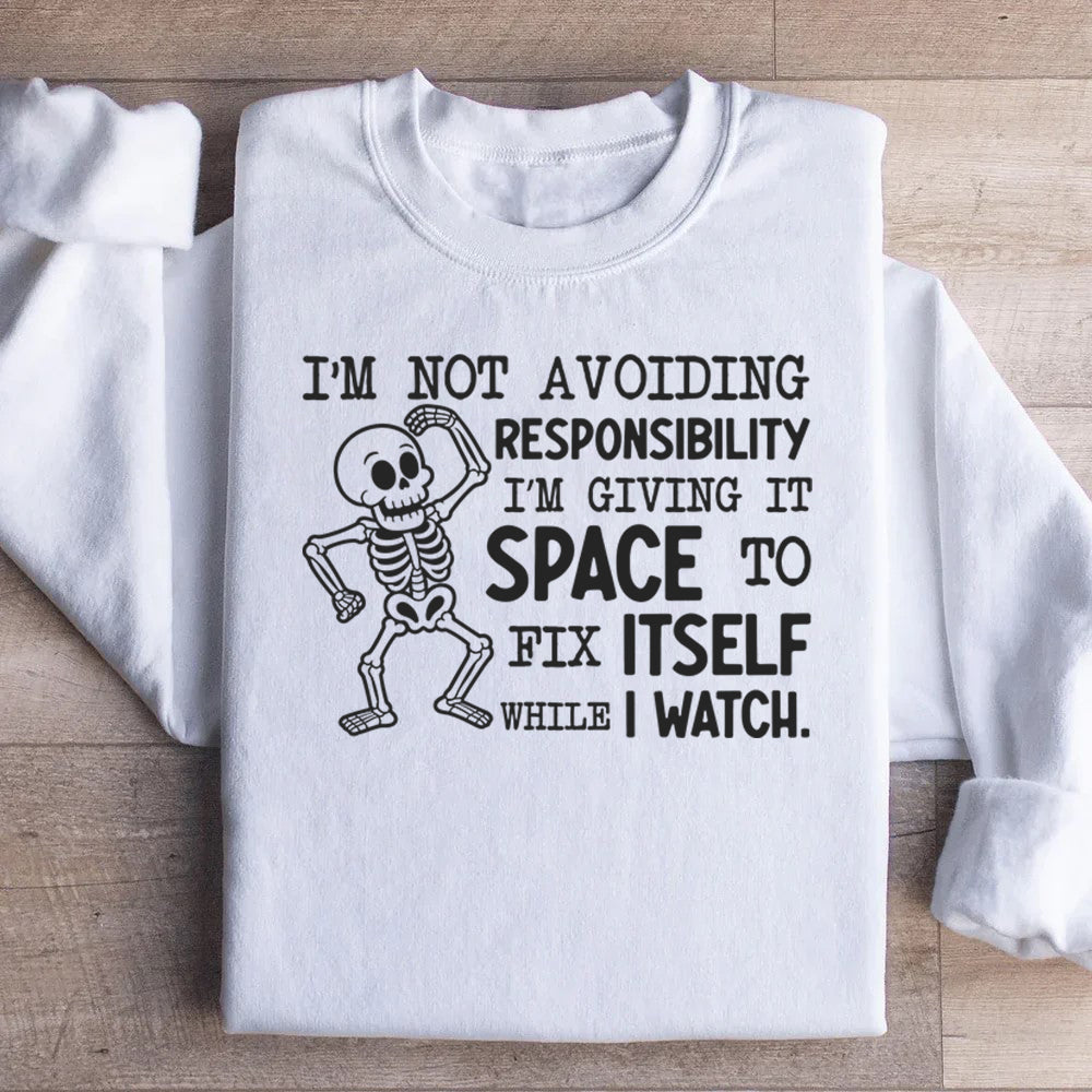 It’s not avoidance — it’s strategic patience. This “I’m Not Avoiding Responsibility, I’m Giving It Space to Fix Itself While I Watch” sweatshirt is for the masters of intentional procrastination, silent optimism, and letting problems marinate long enough to hopefully resolve themselves.