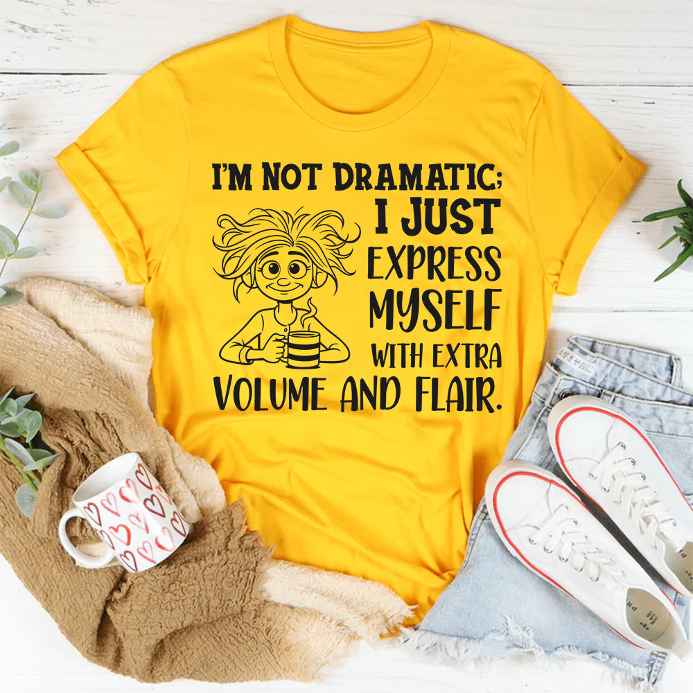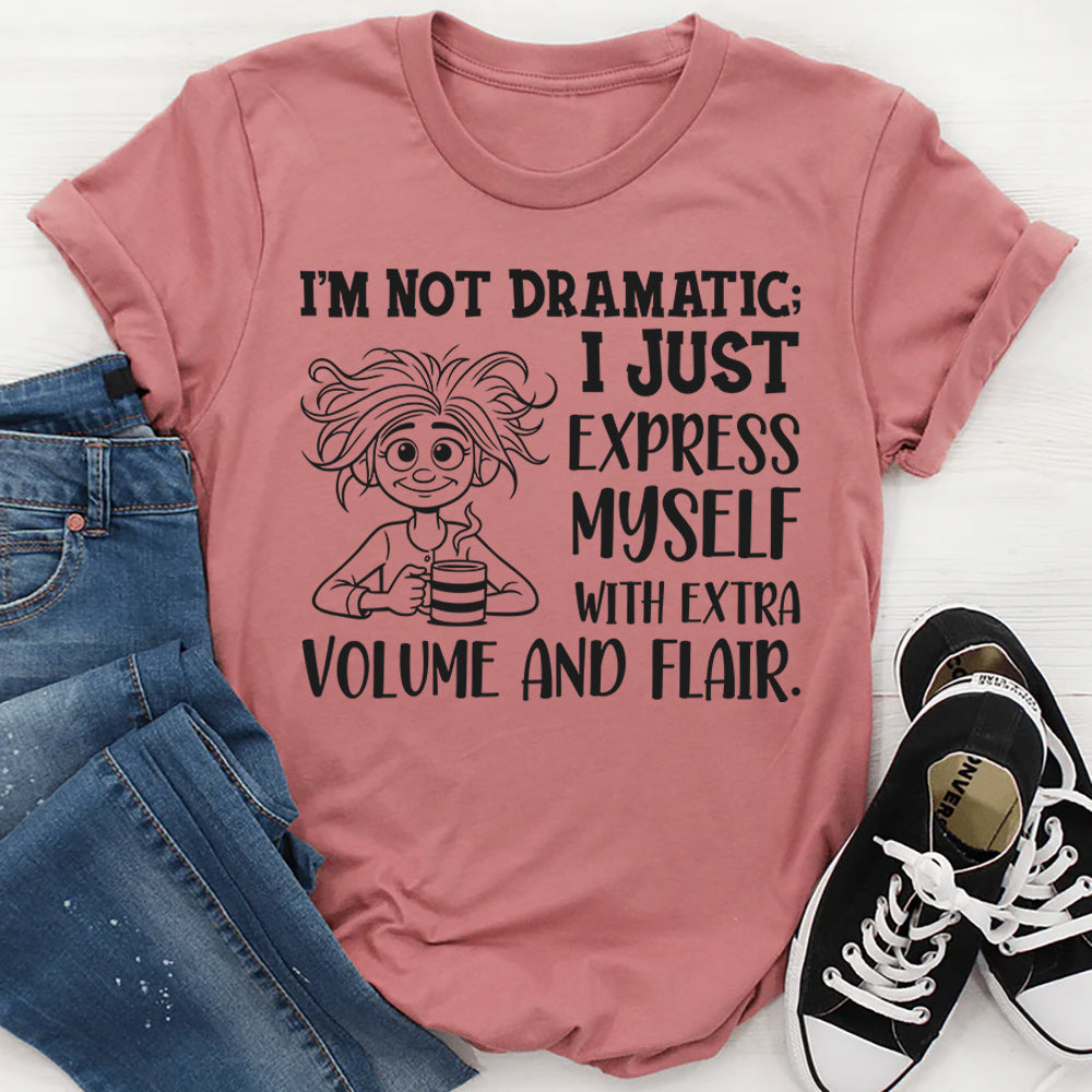 Turn up the volume on your personality with this “I’m Not Dramatic I Just Express Myself with Extra Volume and Flair” t-shirt! Perfect for anyone who lives life out loud, this tee celebrates bold energy, big emotions, and unapologetic self-expression.