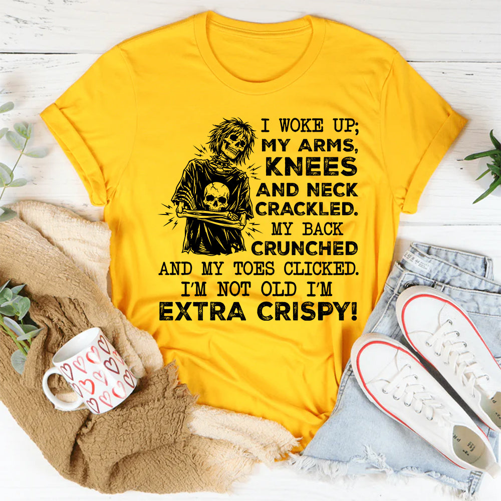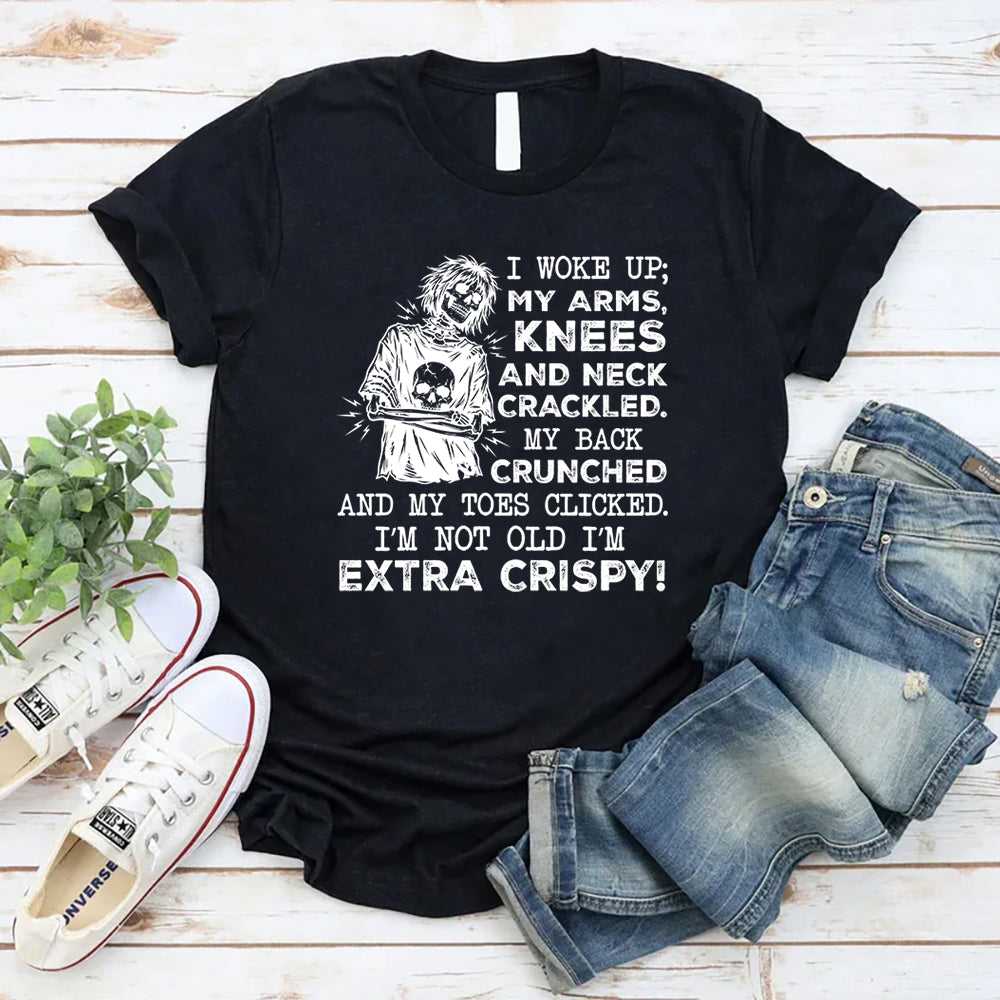 Funny, painfully relatable, and proudly self-aware, the “I’m Not Old, I’m Extra Crispy!” T-shirt is perfect for anyone whose body makes sound effects before they’ve had coffee. It’s a hilarious take on waking up sore, stiff, and crackly—but still owning it with humor.