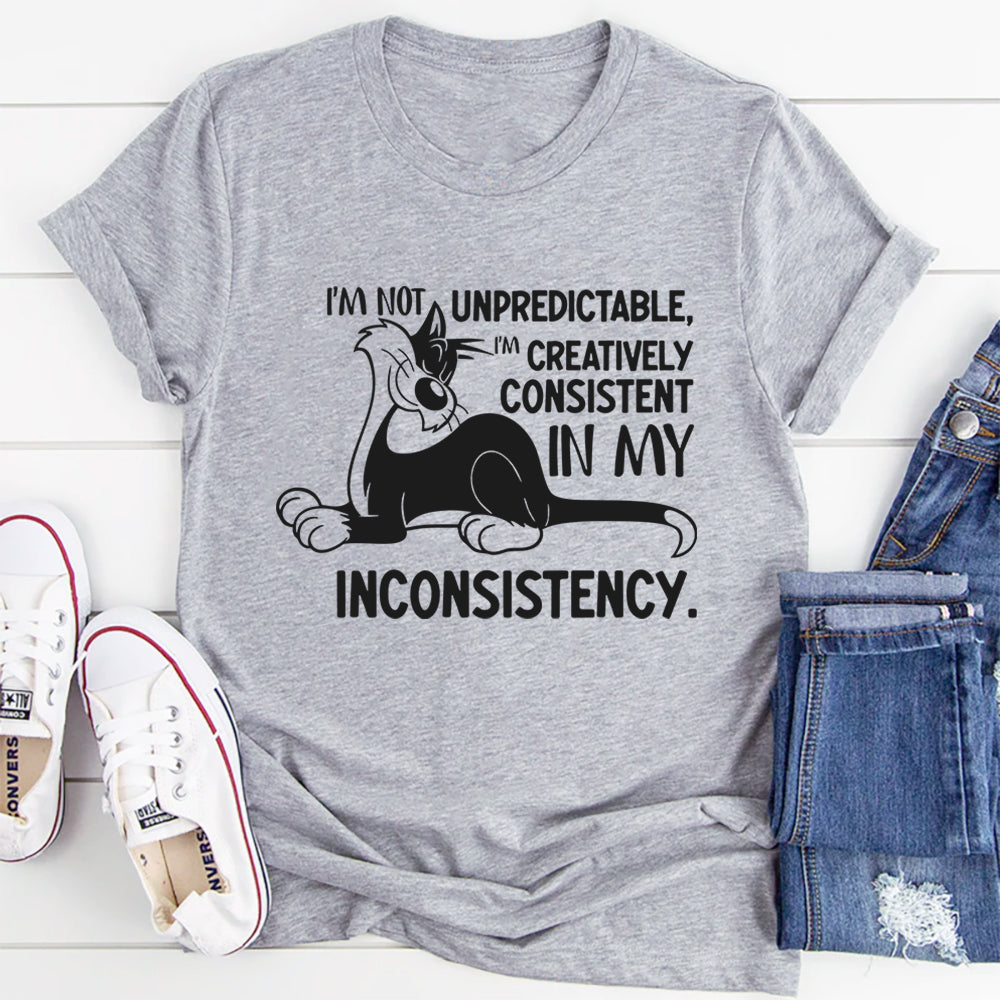 Embrace your wonderfully unpredictable self with this “I’m Not Unpredictable, I’m Creatively Consistent in My Inconsistency” t-shirt! Perfect for those who like to keep life interesting (and everyone guessing), this witty tee celebrates your charming chaos and creative spirit.