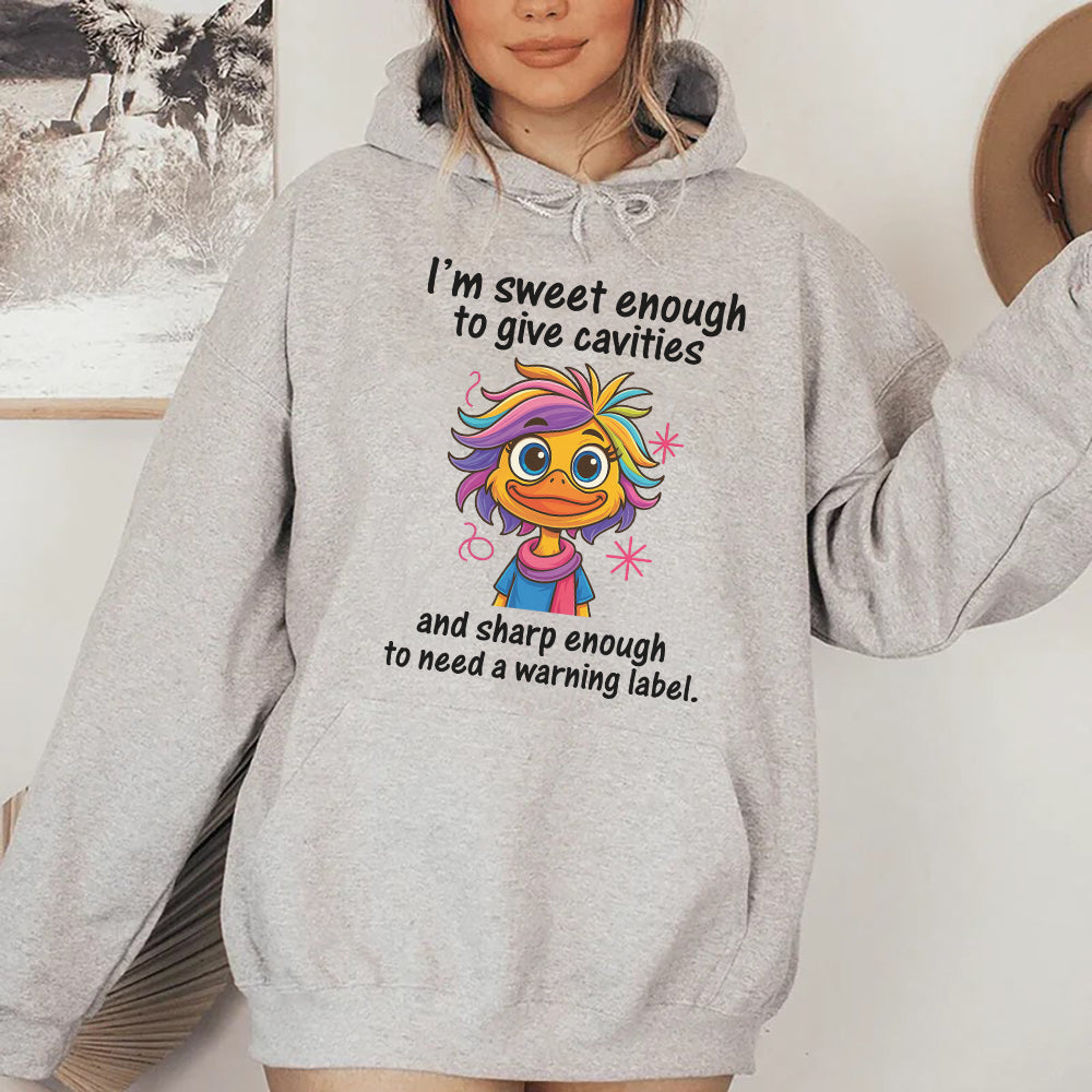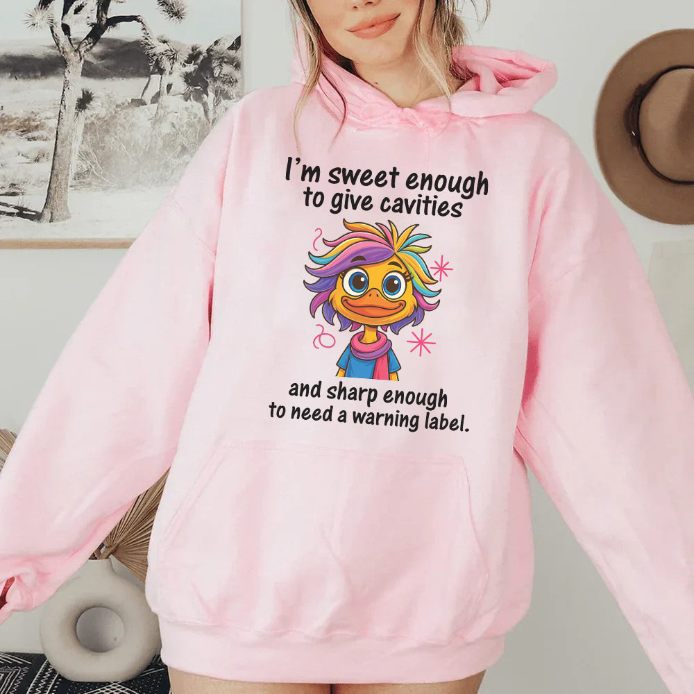 Charming, witty, and unapologetically unforgettable — this “I’m Sweet Enough to Give Cavities and Sharp Enough to Need a Warning Label” hoodie is made for the ones who balance sugar and spice like pros. You’re equally capable of melting hearts and keeping people on their toes, all in one irresistible package.