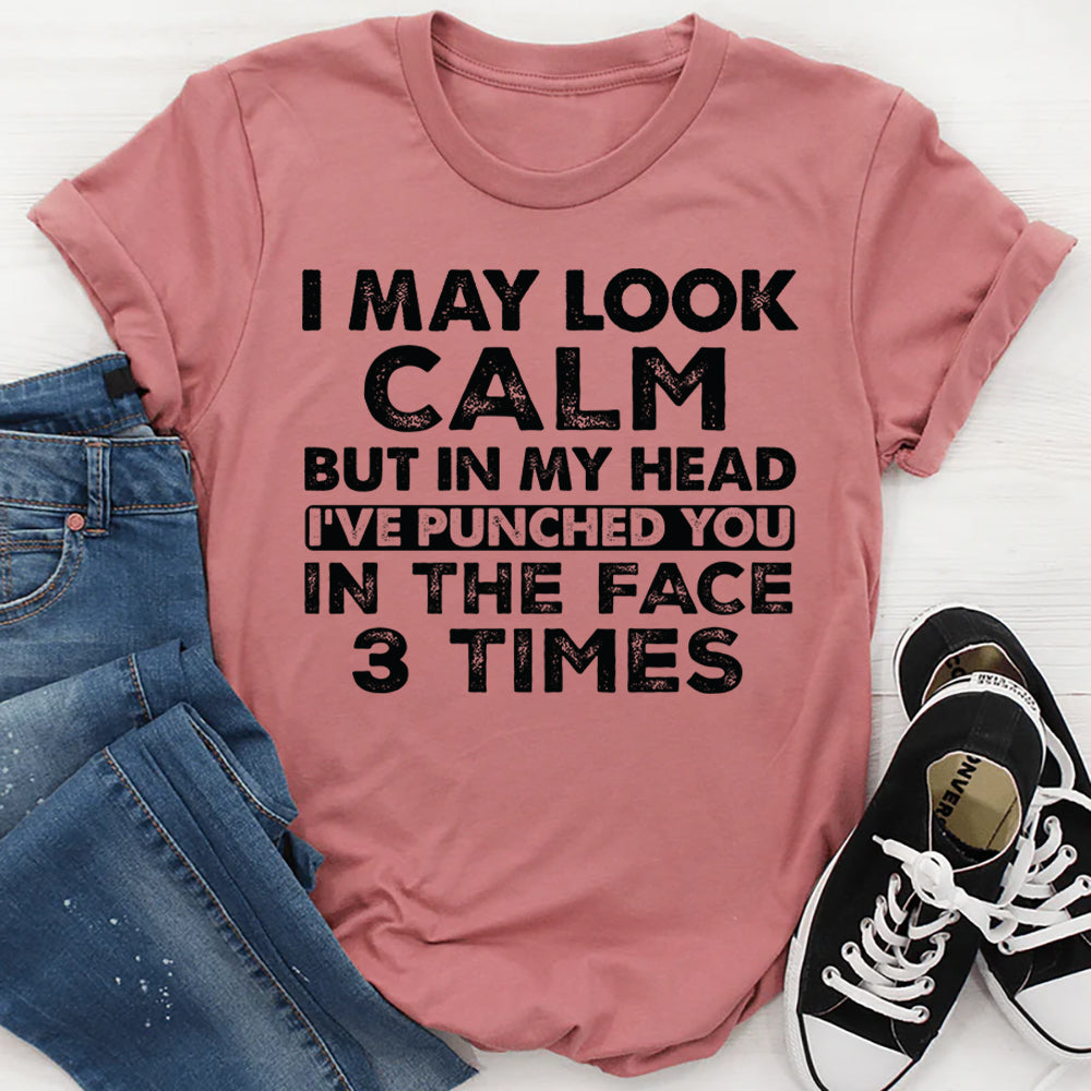 Funny, sarcastic, and painfully relatable. The “I May Look Calm, But In My Head I’ve Punched You in the Face 3 Times” t‑shirt is perfect for anyone who keeps their cool on the outside while their inner thoughts are anything but peaceful. It’s a playful way to express everyday frustration with humor instead of words.