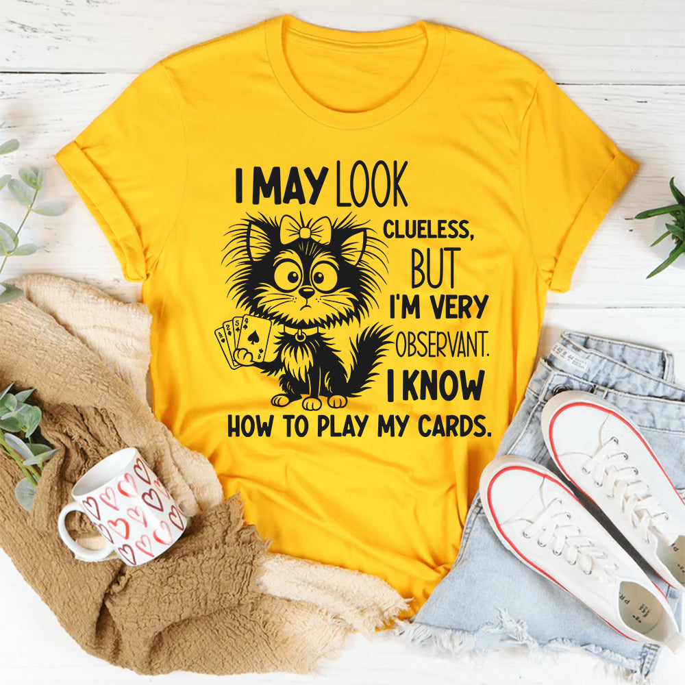 Show off your sharp wit with the “I May Look Clueless But I Am Very Observant, I Know How to Play My Card” t-shirt. Perfect for anyone who knows how to stay low-key while always staying one step ahead, this tee blends humor with confidence in the best way.