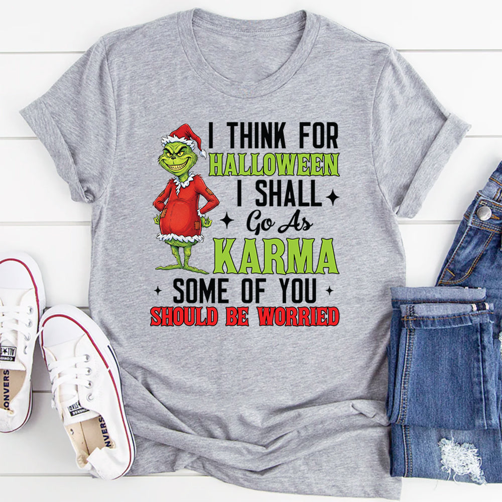 Spooky, sarcastic, and delightfully mischievous. The “I Think for Halloween I Shall Go As Karma—Some of You Should Be Worried” t‑shirt is perfect for anyone who loves dark humor and isn’t afraid to send a playful warning. It’s a bold, witty way to celebrate Halloween with attitude.