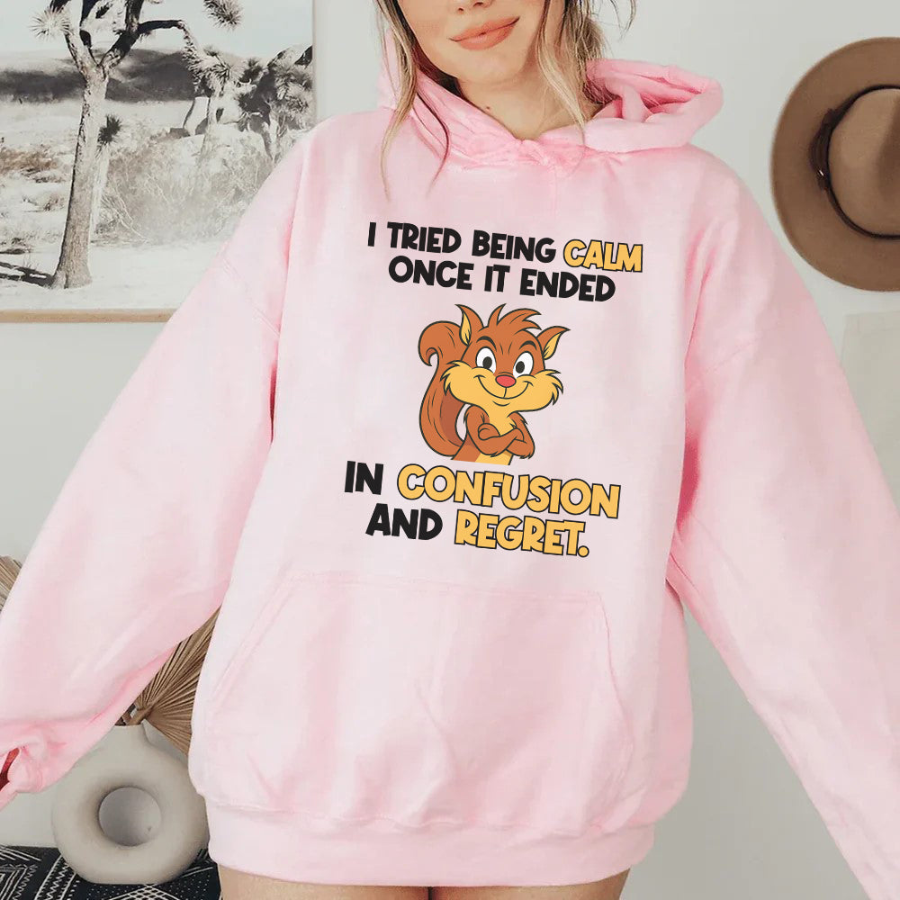 Bold, unapologetic, and perfectly chaotic — this “I Tried Being Calm Once, It Ended in Confusion and Regret” hoodie celebrates the kind of personality that can’t be tamed. It’s for the ones who embrace their energy fully, knowing that calm isn’t always possible — and that’s exactly how they like it.