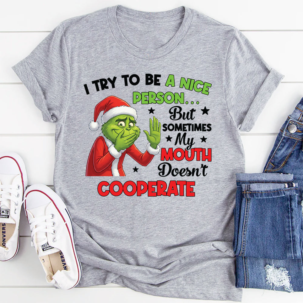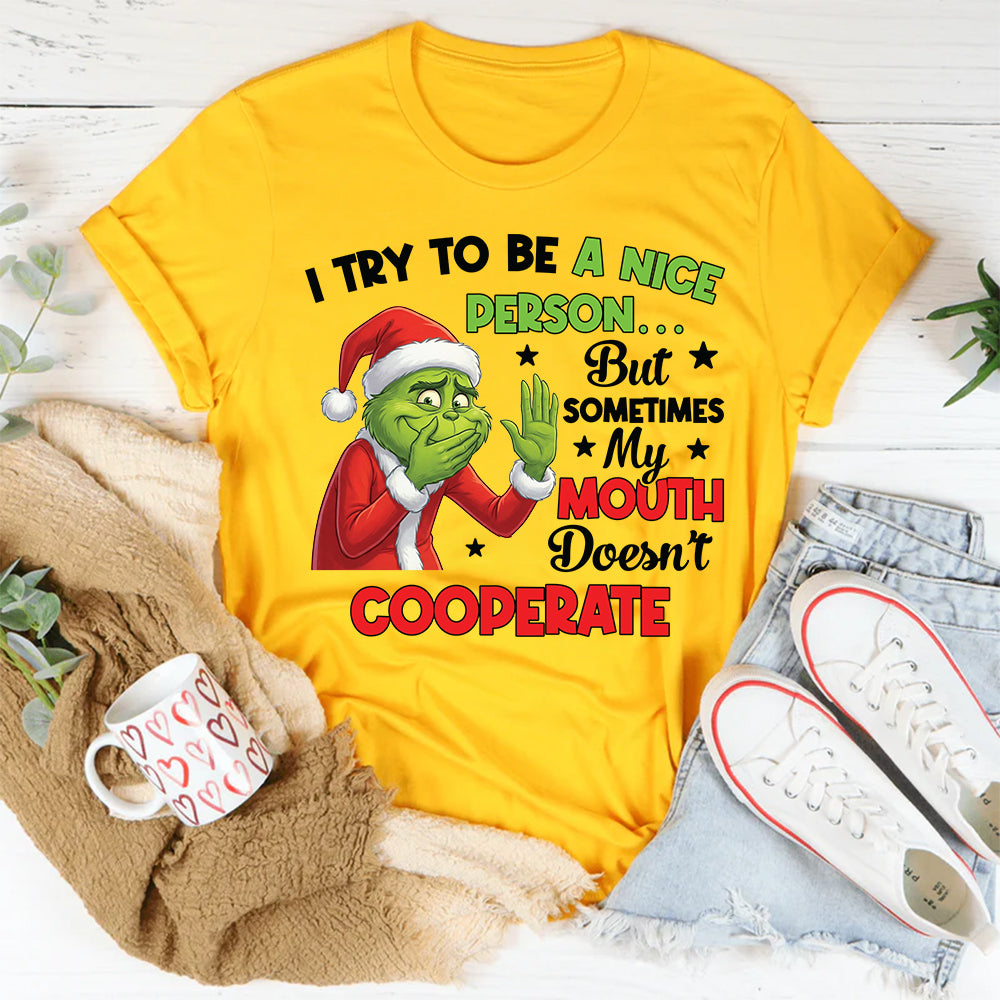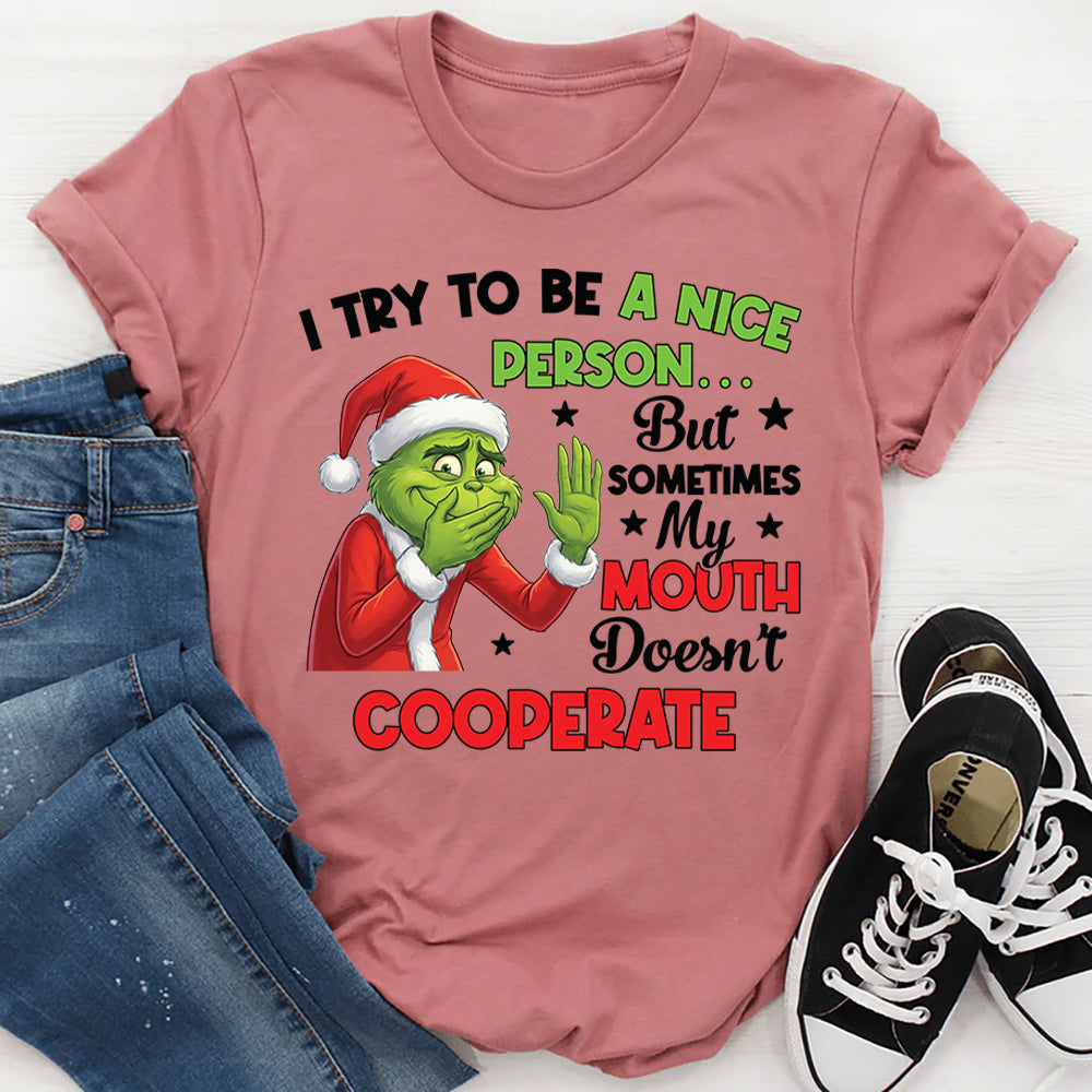 Funny, relatable, and unapologetically honest, the “I Try to Be a Nice Person… But Sometimes My Mouth Doesn’t Cooperate” T-shirt is perfect for anyone who speaks their mind—whether they mean to or not. It’s a playful nod to those moments when your words have a mind of their own.