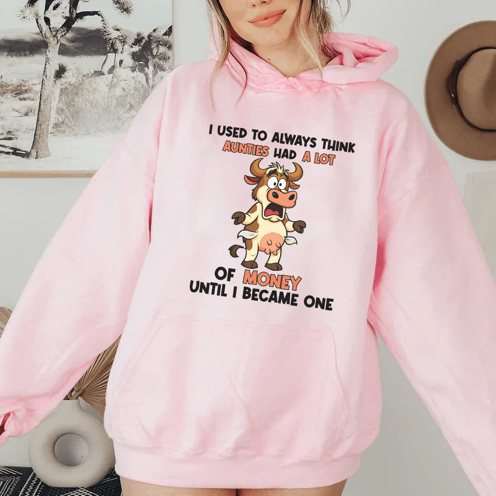Cheerful, honest, and hilariously real — this “I Used to Always Think Aunties Had a Lot of Money Until I Became One” hoodie is for everyone who grew up believing the aunties were rich… only to discover adulthood’s plot twist. It’s the ultimate tribute to responsibility, bills, and the magic trick of looking put-together while your wallet screams quietly.