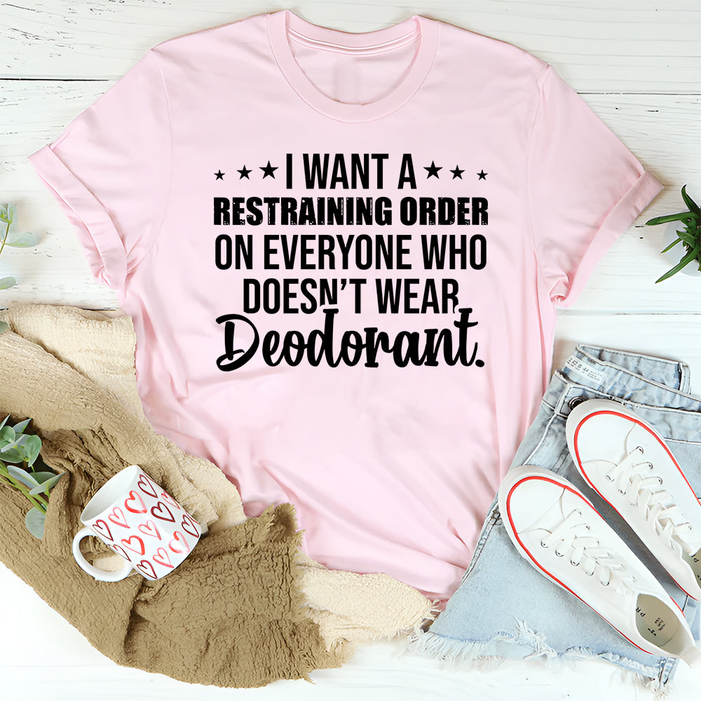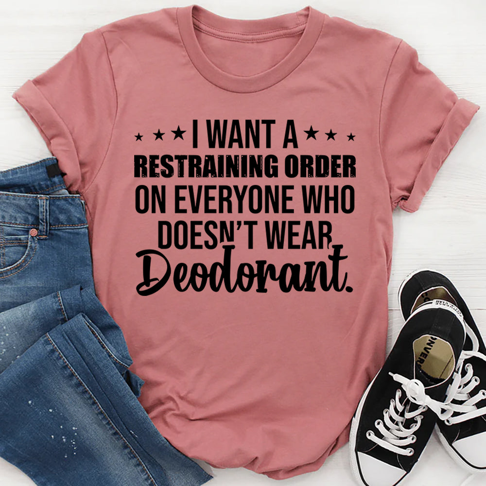 Witty, bold, and unapologetically honest. The “I Want a Restraining Order on Everyone Who Doesn’t Wear Deodorant” t‑shirt is a hilarious declaration of personal space and zero tolerance for stinky situations. Perfect for anyone who values hygiene, boundaries, and a sharp sense of humor.