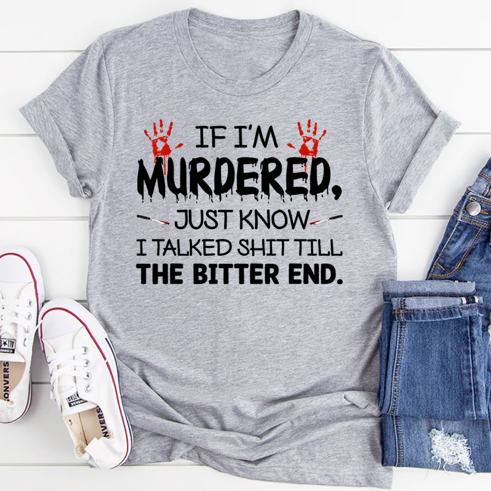 Witty, fearless, and unapologetically savage. The “If I’m Murdered — Just Know I Talked Shit Till the Bitter End” t‑shirt is a bold declaration of attitude for anyone who never holds back, even in the face of danger. Perfect for those with a sharp tongue, dark humor, and zero tolerance for silence.