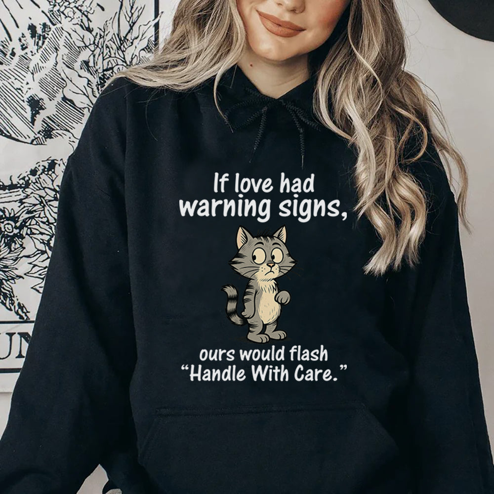 Fiery, devoted, and unapologetically intense — this “If Love Had Warning Signs, Ours Would Flash ‘Handle With Care’” hoodie is made for the ones whose affection comes with a little heat, a lot of passion, and just the right amount of unpredictability. You love fiercely, playfully, and without apology.