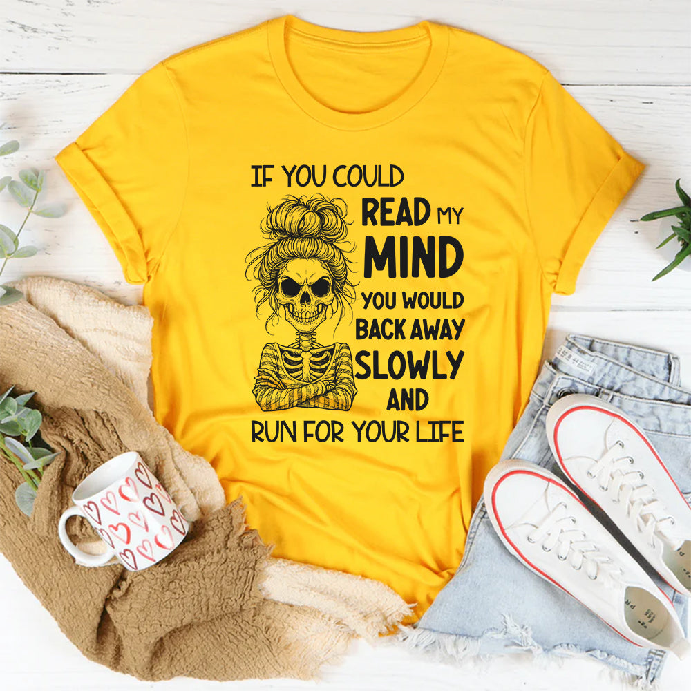 Let your shirt do the warning with the “If You Could Read My Mind You Would Back Away Slowly and Run for Your Life” t-shirt. Perfect for anyone with a dark sense of humor, this tee delivers attitude, mystery, and just the right amount of intimidation.