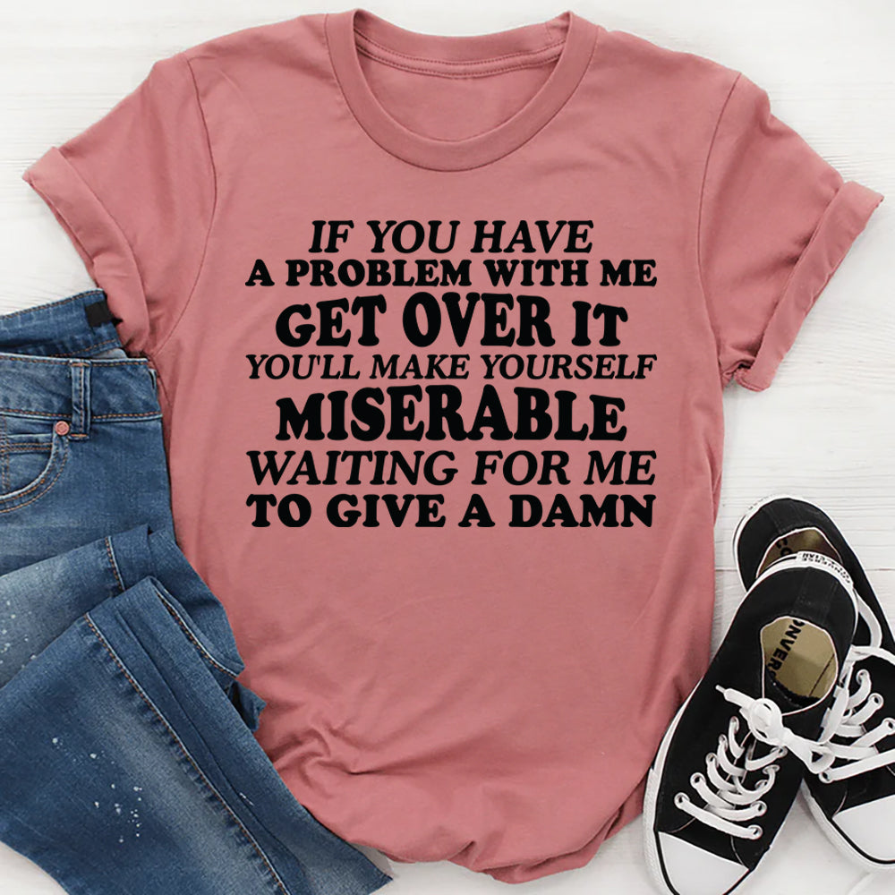 Confident, unapologetic, and straight to the point. The “If You Have a Problem With Me, Get Over It — You’ll Make Yourself Miserable Waiting for Me to Give a Damn” t‑shirt is made for anyone who lives life on their own terms. It delivers bold attitude and humor, letting the world know you’re not wasting energy on negativity.