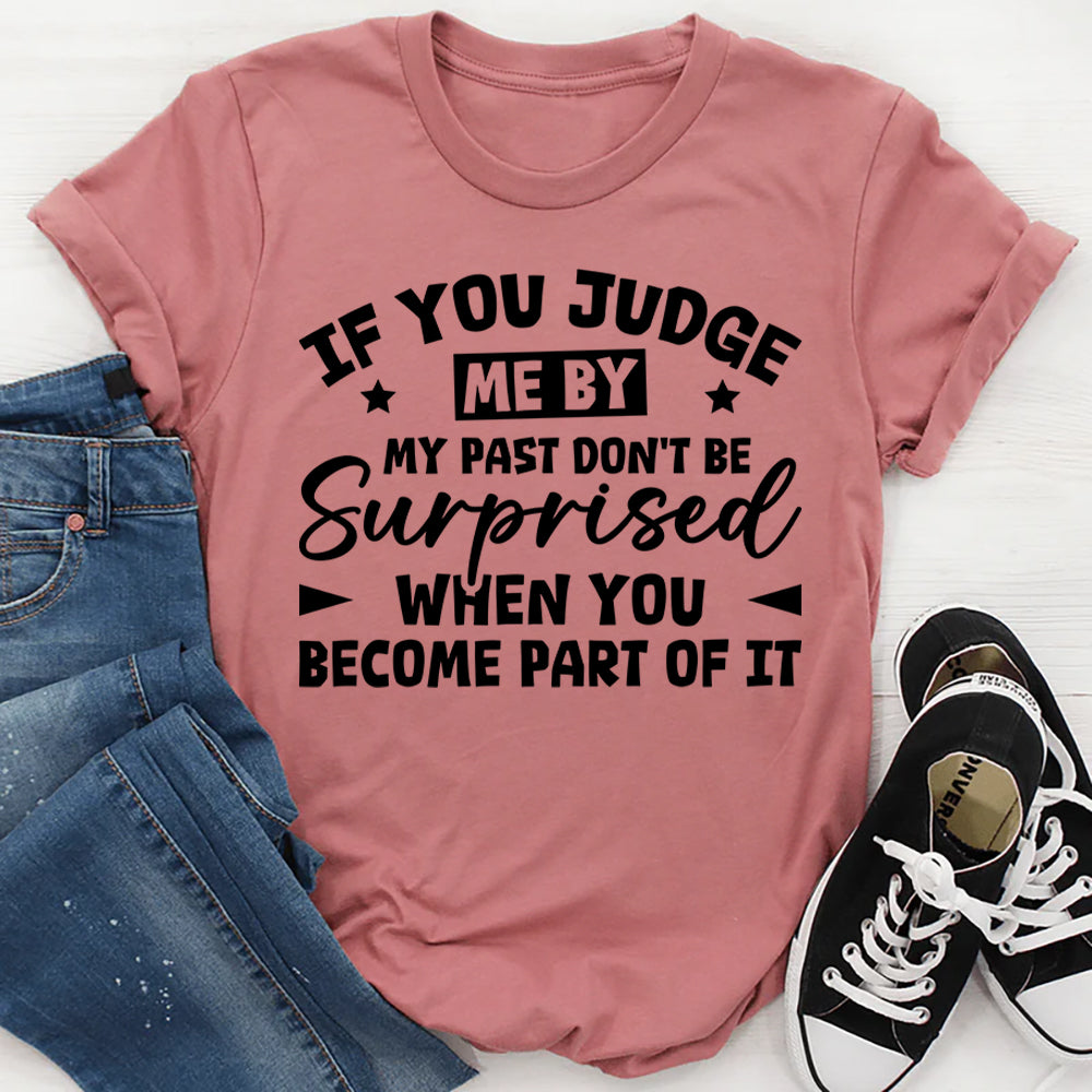 Bold, fearless, and unapologetically honest. The “If You Judge Me by My Past Don’t Be Surprised When You Become Part of It” t‑shirt is for anyone who’s lived, learned, and isn’t afraid to call out judgmental vibes. It’s a powerful statement of confidence with just the right touch of attitude.